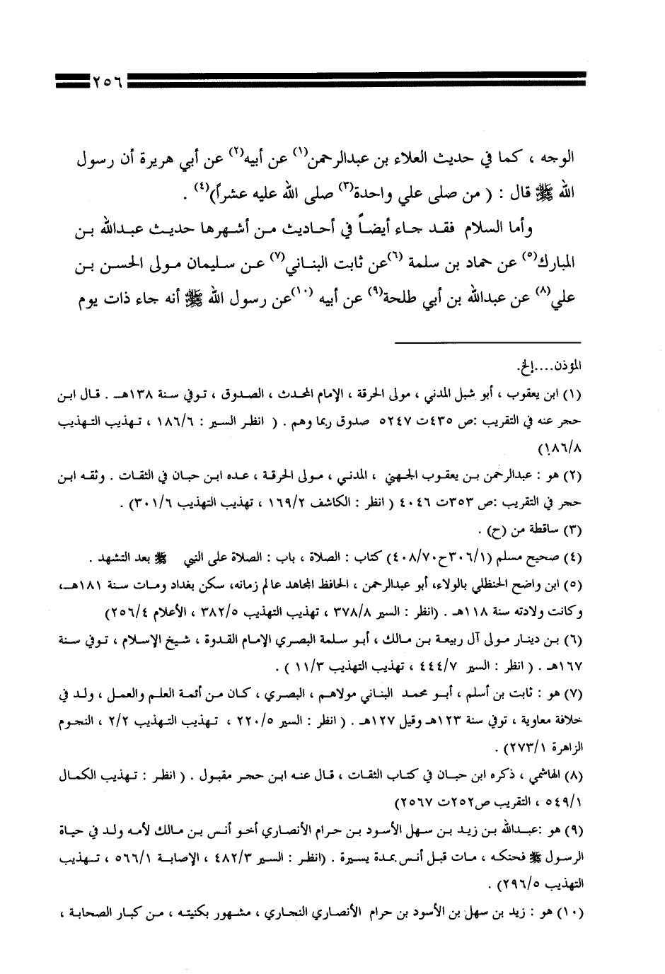 الوجه، كما في حديث العلاء بن عبد الرحمن عن أبيه عن أبي هريرة أن رسول الله صلى الله عليه وسلم قال: (من صلى علي واحدة صلى الله عليه عشرًا).