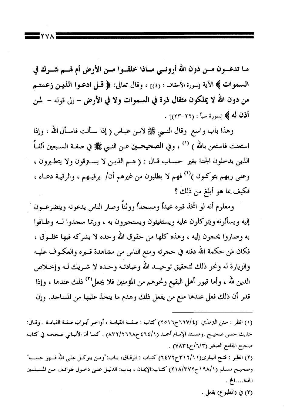 وهذا باب واسع. وقال النبي صلى الله عليه وسلم لابن عباس (إذا سألت فاسأل الله، وإذا استعنت فاستعن بالله)، وفي الصحيحين عن النبي صلى الله عليه وسلم في صفة السبعين ألفًا الذين يدخلون الجنة بغير حساب قال: (هم الذين لا يسترقون ولا يتطيرون، وعلى ربهم يتوكلون) فهم لا يطلبون من غيرهم أن / يرقيهم، والرقية دعاء، فيكف بما هو أبلغ من ذلك؟