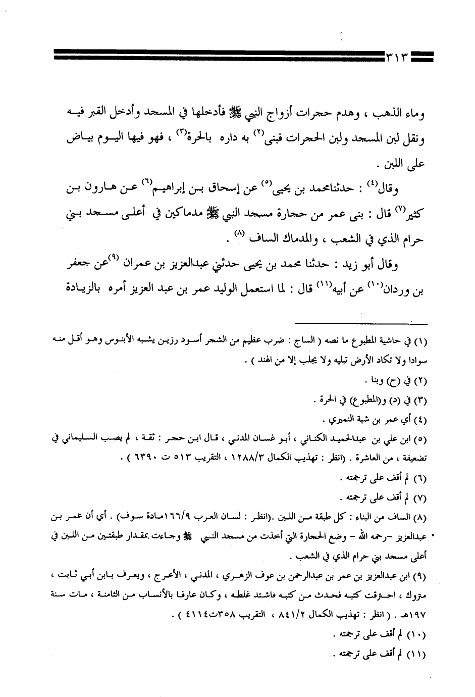 (¬*) قال معد الكتاب للشاملة: في الأصل المطبوع تكرر في بداية هذه الصفحة ما جاء في نهاية الصفحة السابقة، وهي العبارة التالية: (وماء الذهب وهدم حجرات أزواج النبي صلى الله عليه وسلم فأدخلها في المسجد). فتم حذفها.