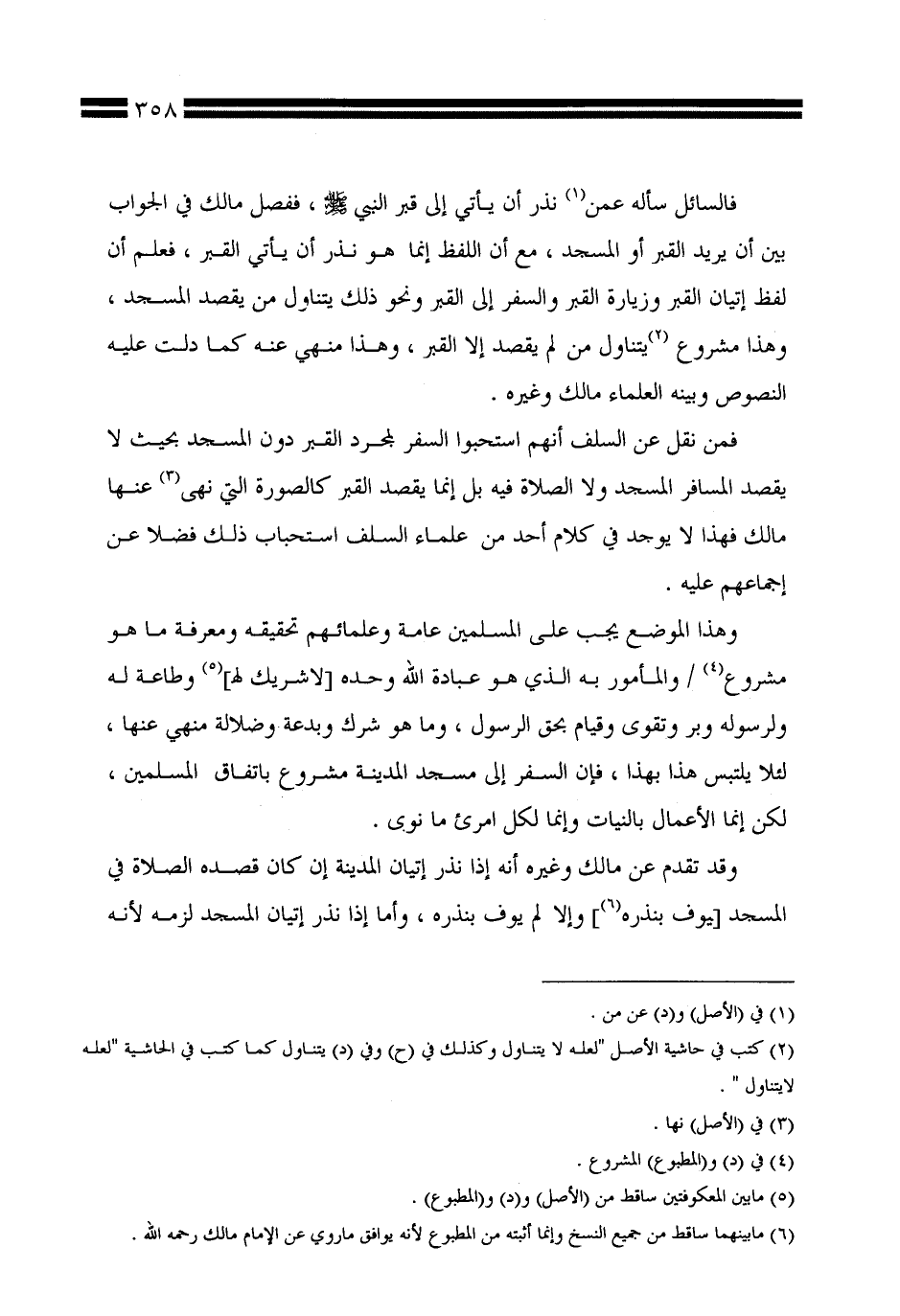 فمن نقل عن السلف أنهم استحبوا السفر لمجرد القبر دون المسجد بحيث لا يقصد المسافر المسجد ولا الصلاة فيه بل إنما يقصد القبر كالصورة التي نهى عنها مالك فهذا لا يوجد في كلام أحد من علماء السلف استحباب ذلك فضلاً عن إجماعهم عليه.