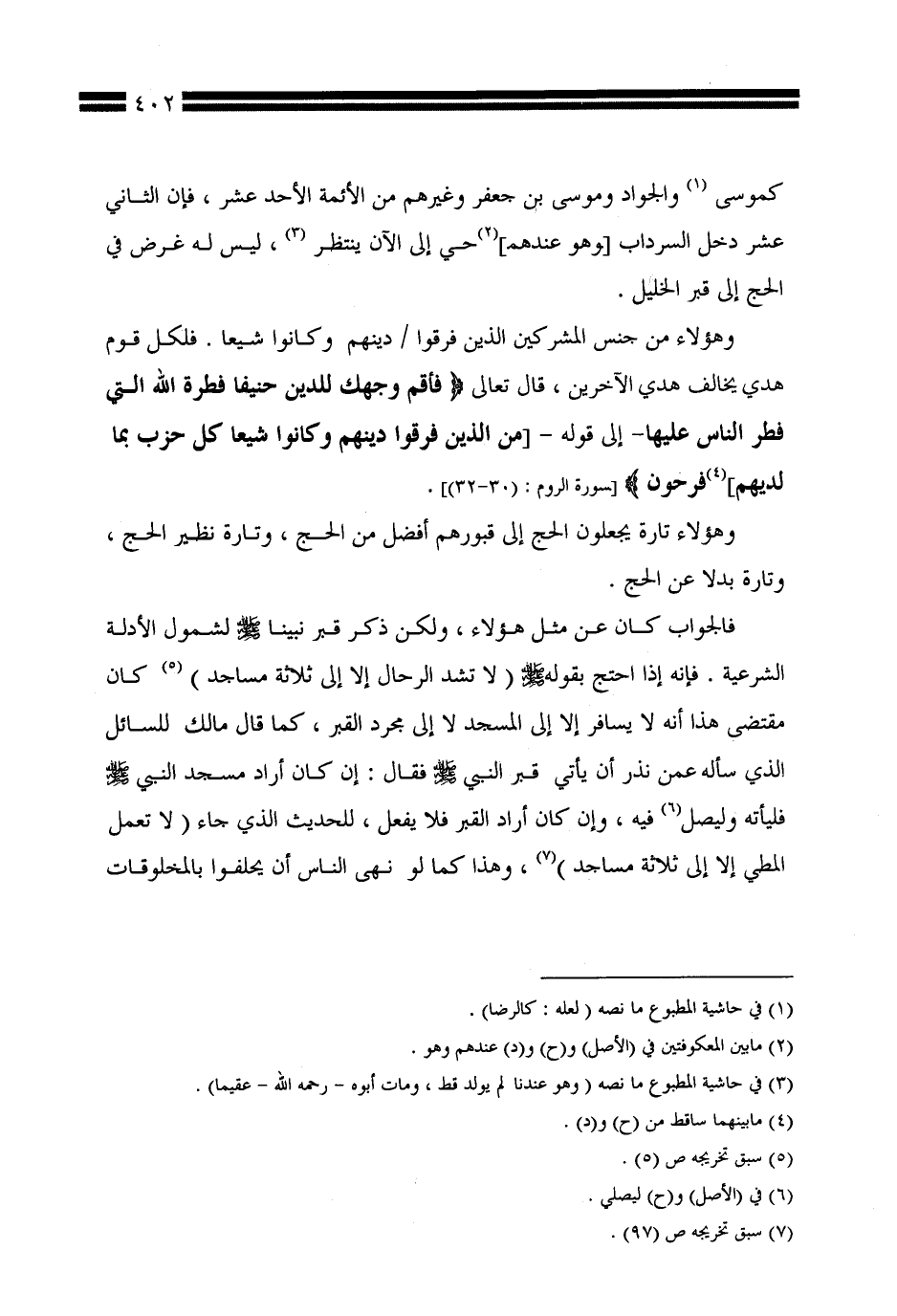 كموسى والجواد وموسى بن جعفر وغيرهم من الأئمة الأحد عشر، فإن الثاني عشر دخل السرداب وهو عندهم حي إلى الآن ينتظر، ليس له غرض في الحج إلى قبر الخليل.
