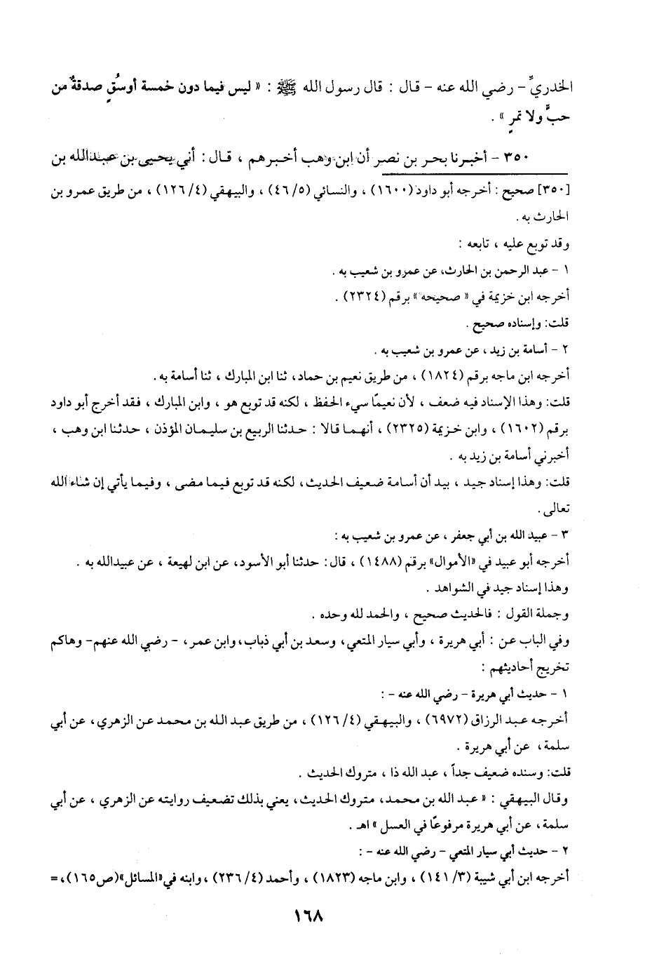 349- حَدَّثَنَا مُحَمَّدُ بْنُ يَحْيَى ، قَالَ : حَدَّثَنَا مُحَمَّدُ بْنُ يُوسُفَ ، قَالَ : حَدَّثَنَا سُفْيَانُ ، عَنْ إِسْمَاعِيلَ بْنِ أُمَيَّةَ ، عَنْ مُحَمَّدِ بْنِ يَحْيَى بْنِ حَبَّانَ ، عَنْ يَحْيَى بْنِ عُمَارَةَ ، عَنْ أَبِي سَعِيدٍ الْخُدْرِيِّ ، رَضِيَ اللَّهُ عَنْهُ ، قَالَ : قَالَ رَسُولُ اللهِ صَلَّى اللَّهُ عَلَيْهِ وَسَلَّمَ : لَيْسَ فِيمَا دُونَ خَمْسَةِ أَوْسُقٍ صَدَقَةٌ مِنْ حُبٍّ وَلاَ تَمْرٍ.