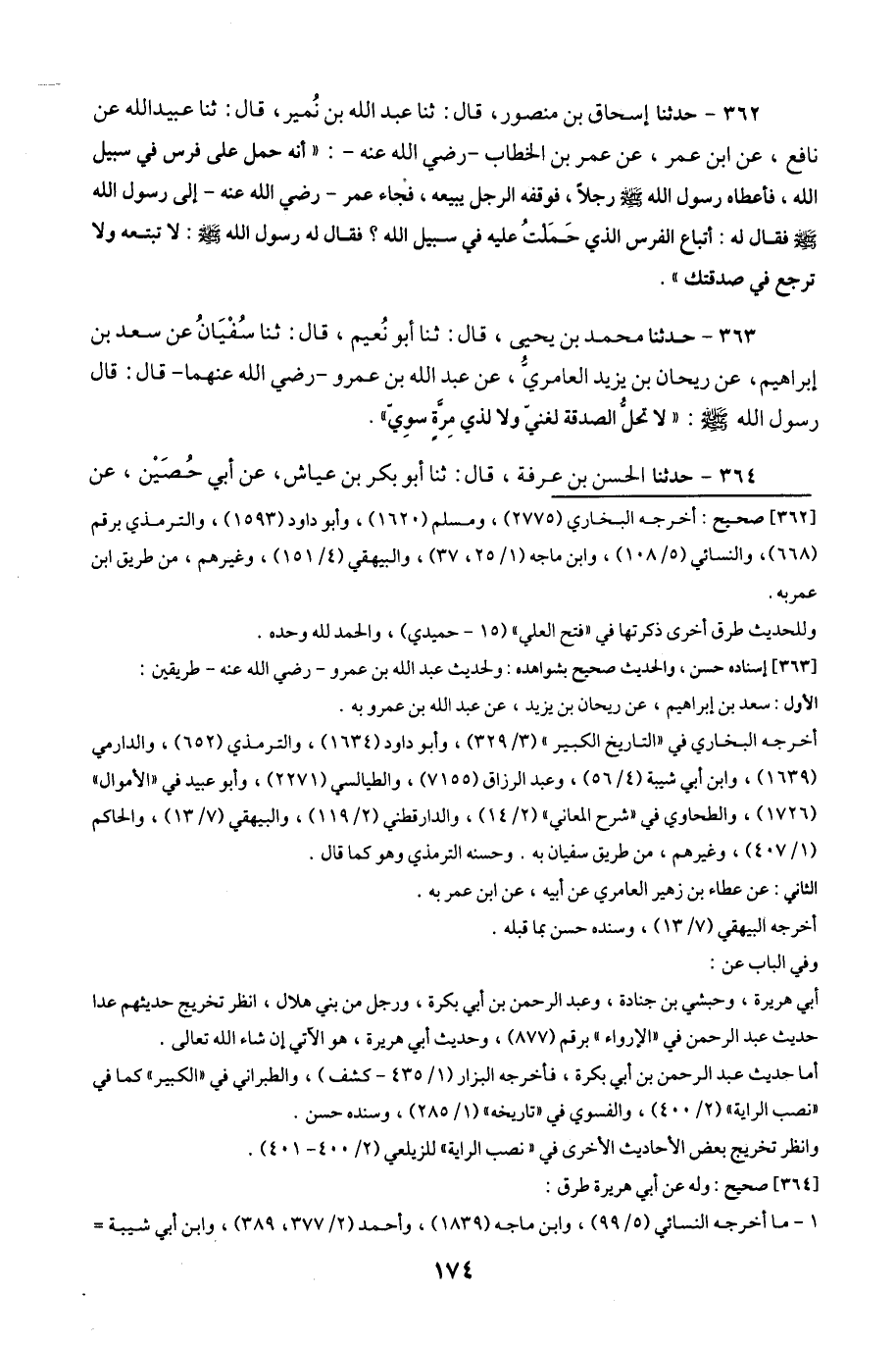 362- حَدَّثَنَا إِسْحَاقُ بْنُ مَنْصُورٍ ، قَالَ : حَدَّثَنَا عَبْدُ اللهِ بْنُ نُمَيْرٍ ، قَالَ : حَدَّثَنَا عُبَيْدُ اللهِ ، عَنْ نَافِعٍ ، عَنِ ابْنِ عُمَرَ ، عَنْ عُمَرَ بْنِ الْخَطَّابِ ، رَضِيَ اللَّهُ عَنْهُ ، أَنَّهُ حَمَلَ عَلَى فَرَسٍ فِي سَبِيلِ اللهِ فَأَعْطَاهُ رَسُولُ اللهِ صَلَّى اللَّهُ عَلَيْهِ وَسَلَّمَ رَجُلاً ، فَوَقَّفَهُ الرَّجُلُ يَبِيعُهُ فَجَاءَ عُمَرُ ، رَضِيَ اللَّهُ عَنْهُ ، إِلَى رَسُولِ اللهِ صَلَّى اللَّهُ عَلَيْهِ وَسَلَّمَ فَقَالَ لَهُ : أَتُبَاعُ الْفَرَسَ الَّذِي حَمَلْتُ عَلَيْهِ فِي سَبِيلِ اللهِ ؟ فَقَالَ لَهُ رَسُولُ اللهِ صَلَّى اللَّهُ عَلَيْهِ وَسَلَّمَ : لاَ تَبْتَعْهُ وَلاَ تَرْجِعْ فِي صَدَقَتِكَ.