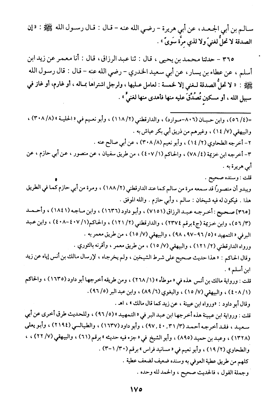 365- حَدَّثَنَا مُحَمَّدُ بْنُ يَحْيَى ، قَالَ : حَدَّثَنَا عَبْدُ الرَّزَّاقِ ، قَالَ : أَخْبَرَنَا مَعْمَرٌ ، عَنْ زَيْدِ بْنِ أَسْلَمَ ، عَنْ عَطَاءِ بْنِ يَسَارٍ ، عَنْ أَبِي سَعِيدٍ الْخُدْرِيِّ ، رَضِيَ اللَّهُ عَنْهُ ، قَالَ : قَالَ رَسُولُ اللهِ صَلَّى اللَّهُ عَلَيْهِ وَسَلَّمَ : لاَ تَحِلُّ الصَّدَقَةُ لِغَنِيٍّ إِلاَّ لِخَمْسَةٍ لِعَامِلٍ عَلَيْهَا وَلِرَجُلٍ اشْتَرَاهَا بِمَالِهِ أَوْ غَارِمٍ أَوْ غَازٍ فِي سَبِيلِ اللهِ أَوْ مِسْكِينٍ تُصُدِّقَ عَلَيْهِ مِنْهَا فَأَهْدَى مِنْهَا لِغَنِيٍّ.