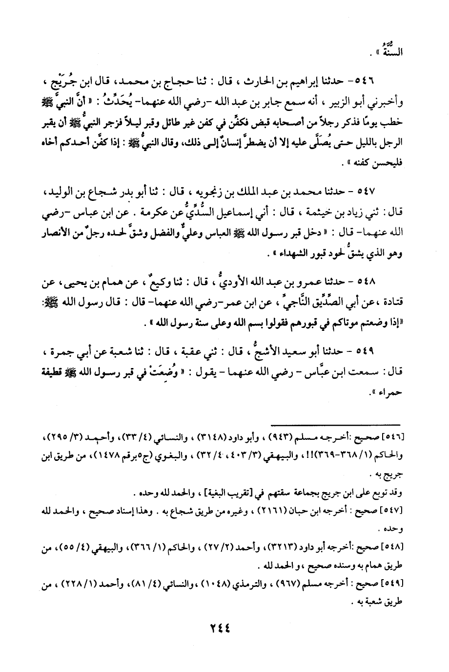 547- حَدَّثَنَا مُحَمَّدُ بْنُ عَبْدِ الْمَلِكِ بْنِ زَنْجَوَيْهِ ، قَالَ : حَدَّثَنَا أَبُو بَدْرٍ شُجَاعُ بْنُ الْوَلِيدِ ، قَالَ : حَدَّثَنِي زِيَادُ بْنُ خَيْثَمَةَ قَالَ : أَخْبَرَنِي إِسْمَاعِيلُ السُّدِّيُّ ، عَنْ عِكْرِمَةَ ، عَنِ ابْنِ عَبَّاسٍ ، رَضِيَ اللَّهُ عَنْهُمَا ، قَالَ : دَخَلَ قَبْرَ رَسُولِ اللهِ صَلَّى اللَّهُ عَلَيْهِ وَسَلَّمَ الْعَبَّاسُ وَعَلِيُّ وَالْفَضْلُ وَشَقَّ لَحْدَهُ رَجُلٌ مِنَ الأَنْصَارِ وَهُوَ الَّذِي يَشُقُّ لُحُودَ قُبُورِ الشُّهَدَاءِ.