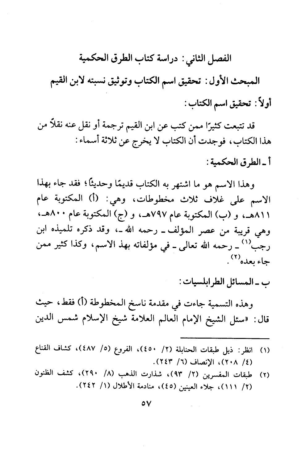 الفصل الثاني: دراسة كتاب الطرق الحكمية