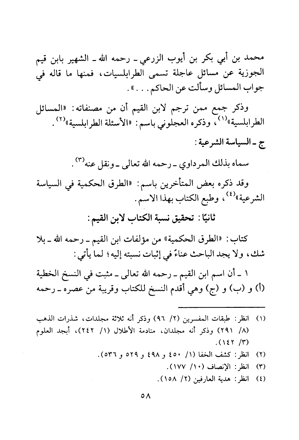 محمد بن أبي بكر بن أيوب الزرعي - رحمه الله - الشهير بابن قيم الجوزية عن مسائل عاجلة تسمى الطرابلسيات، فمنها ما قاله في جواب المسائل وسألت عن الحاكم ... ".