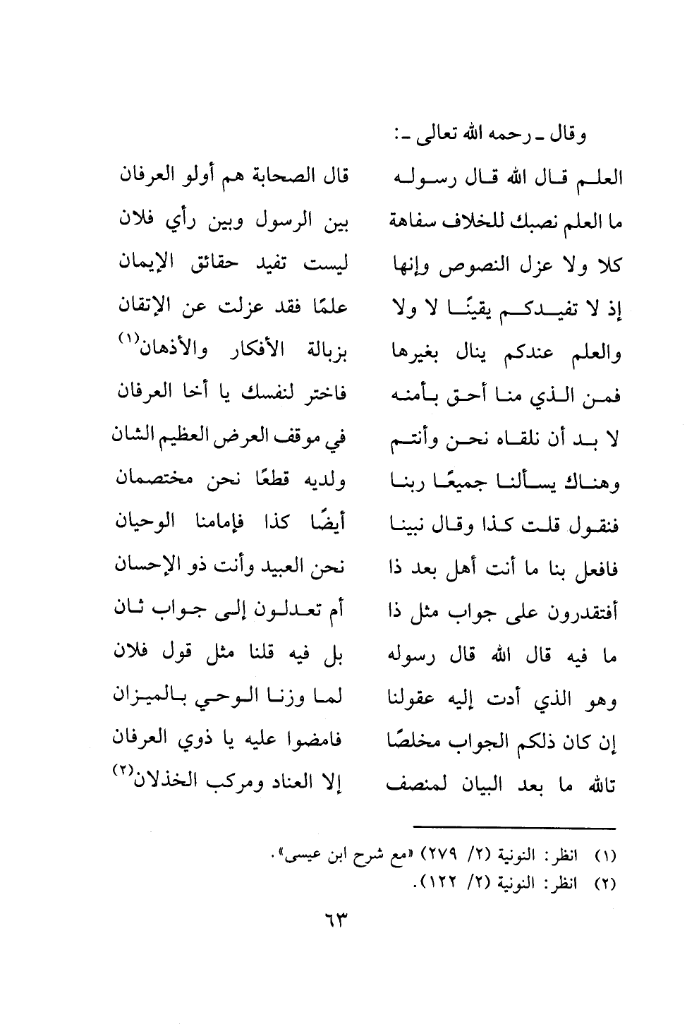 العلم قال الله قال رسوله ... قال الصحابة هم أولو العرفان