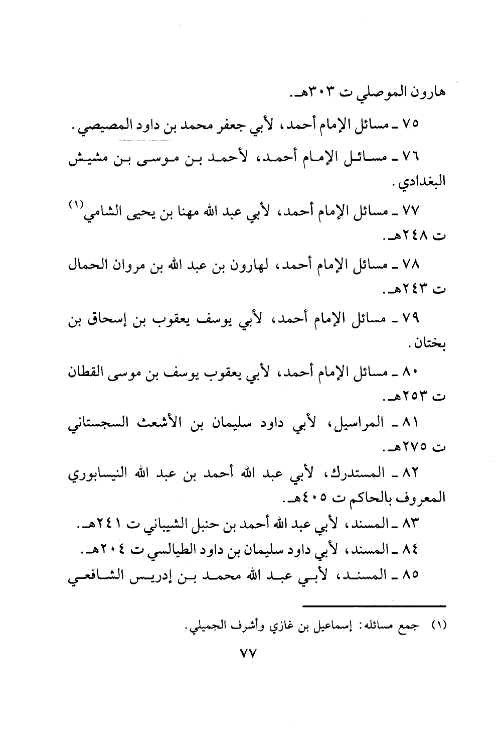 77 - مسائل الإمام أحمد، لأبي عبد الله مهنا بن يحيى الشامي (¬1) ت 248 هـ.