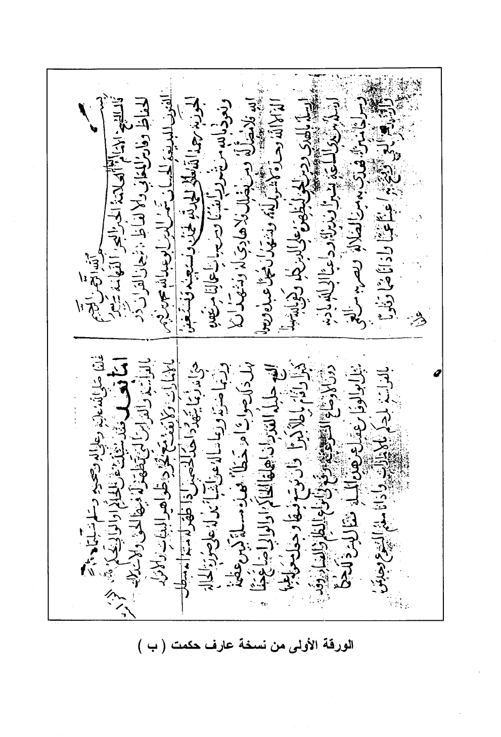 الورقة الأولى من نسخة عارف حكمت (ب)