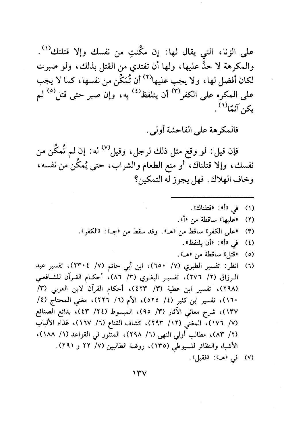 (¬6) انظر: تفسير الطبري (7/ 650)، ابن أبي حاتم (7/ 2304)، تفسير عبد الرزاق (2/ 276)، تفسير البغوي (3/ 86)، أحكام القرآن للشافعي (298)، تفسير ابن عطية (3/ 423)، أحكام القرآن لابن العربي (3/ 160)، تفسير ابن كثير (4/ 525)، الأم (6/ 226)، مغني المحتاج (4/ 137)، شرح معاني الآثار (3/ 95)، المبسوط (24/ 43)، بدائع الصنائع (7/ 176)، المغني (12/ 293)، كشاف القناع (6/ 167)، غذاء الألباب (2/ 83)، مطالب أولي النهى (6/ 298)، المنثور في القواعد (1/ 188)، الأشباه والنظائر للسيوطي (135)، روضة الطالبين (7/ 22 و 291).