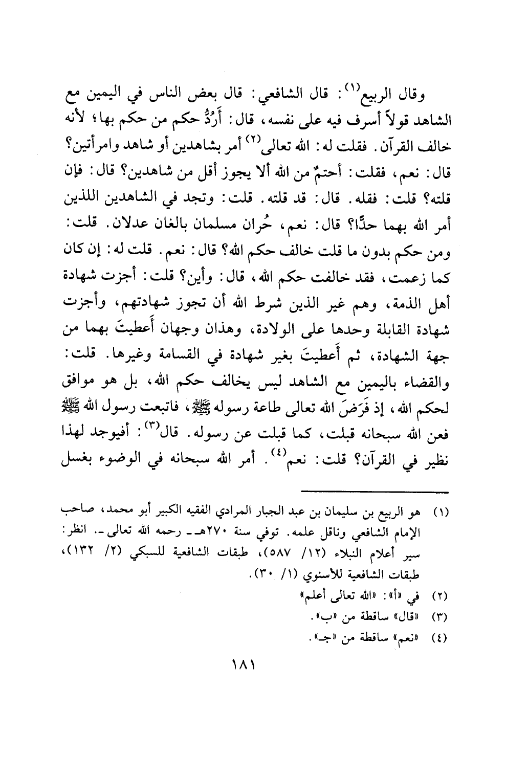 (¬1) هو الربيع بن سليمان بن عبد الجبار المرادي الفقيه الكبير أبو محمد، صاحب الإمام الشافعي وناقل علمه. توفي سنة 270 هـ - رحمه الله تعالى -. انظر: سير أعلام النبلاء (12/ 587)، طبقات الشافعية للسبكي (2/ 132)، طبقات الشافعية للأسنوي (1/ 30).
