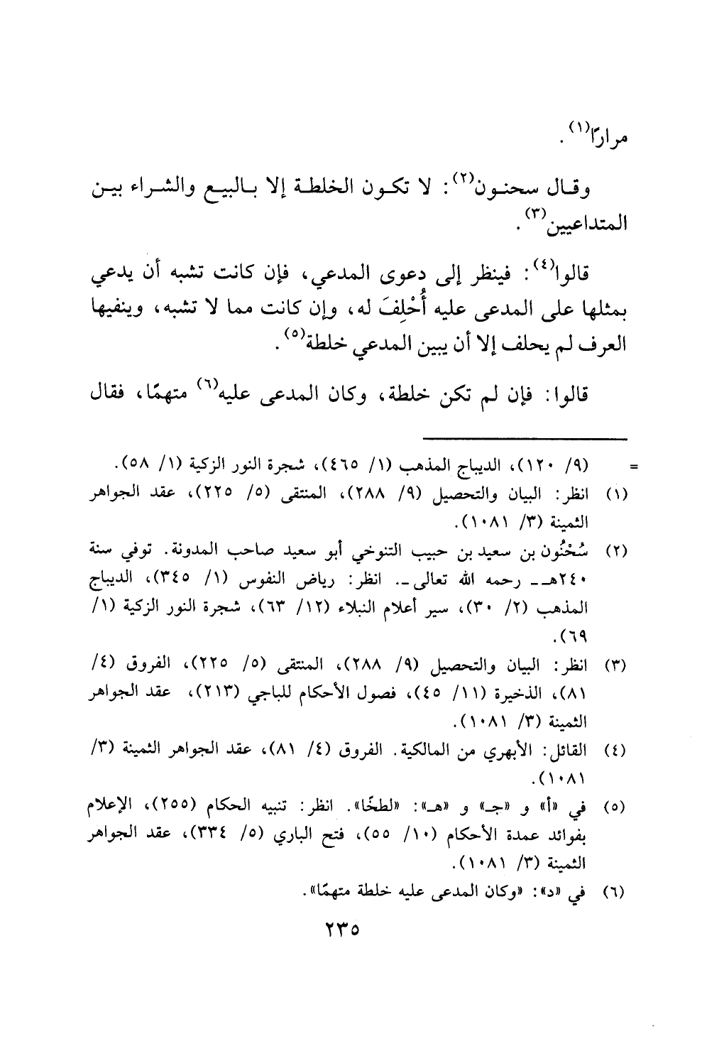 (¬2) سُحْنُون بن سعيد بن حبيب التنوخي أبو سعيد صاحب المدونة. توفي سنة 240 هـ - رحمه الله تعالى -. انظر: رياض النفوس (1/ 345)، الديباج المذهب (2/ 30)، سير أعلام النبلاء (12/ 63)، شجرة النور الزكية (1/ 69).
