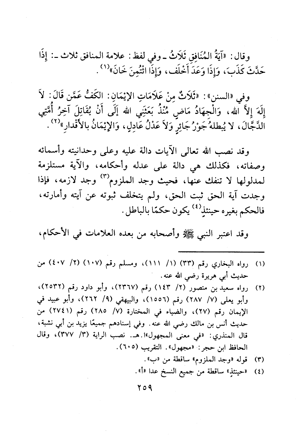 وفي "السنن": "ثَلَاثٌ مِنْ عَلَامَاتِ الإيْمَانِ: الكَفُّ عَمَّن قَالَ: لَا إِلَهَ إِلَّا الله، وَالْجهَادُ مَاضٍ مُنْذُ بَعَثَنِي الله إَلَى أَنْ يُقَاتِلَ آخِرُ أُمَّتِي الدَّجَّالَ، لا يُبطلهُ جَوْرُ جَائِرٍ وَلَا عَدْلُ عَادِلٍ، وَالإِيْمَانُ بالأَقْدارِ" (¬2).