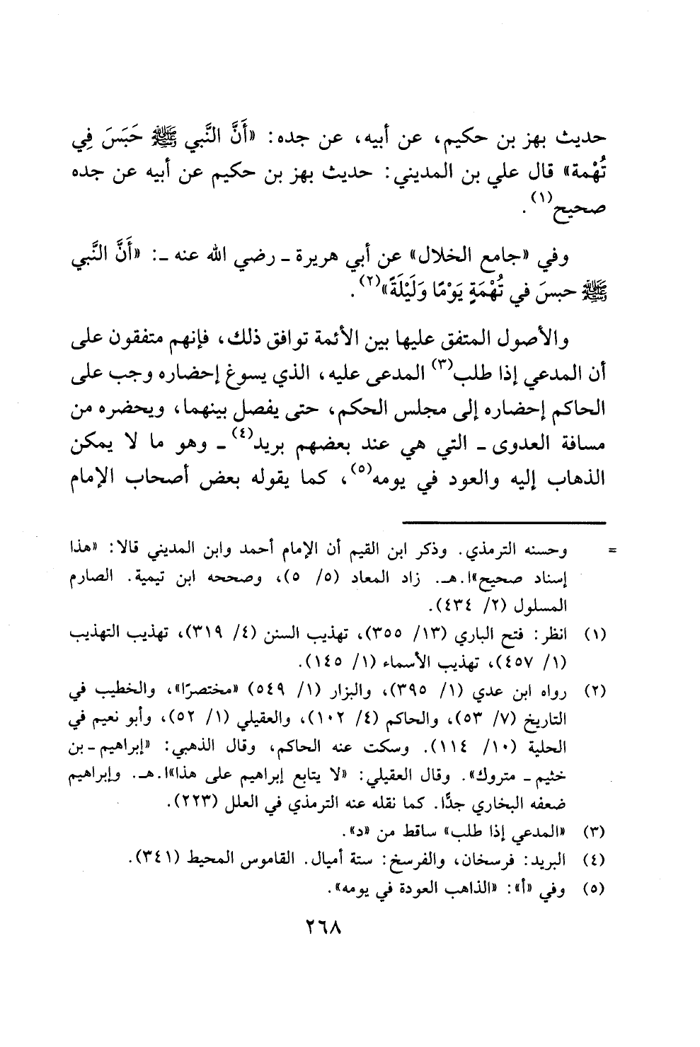 حديث بهز بن حكيم، عن أبيه، عن جده: "أَنَّ النَّبي - صلى الله عليه وسلم - حَبَسَ فِي تُهْمة" قال علي بن المديني: حديث بهز بن حكيم عن أبيه عن جده صحيح (¬1).