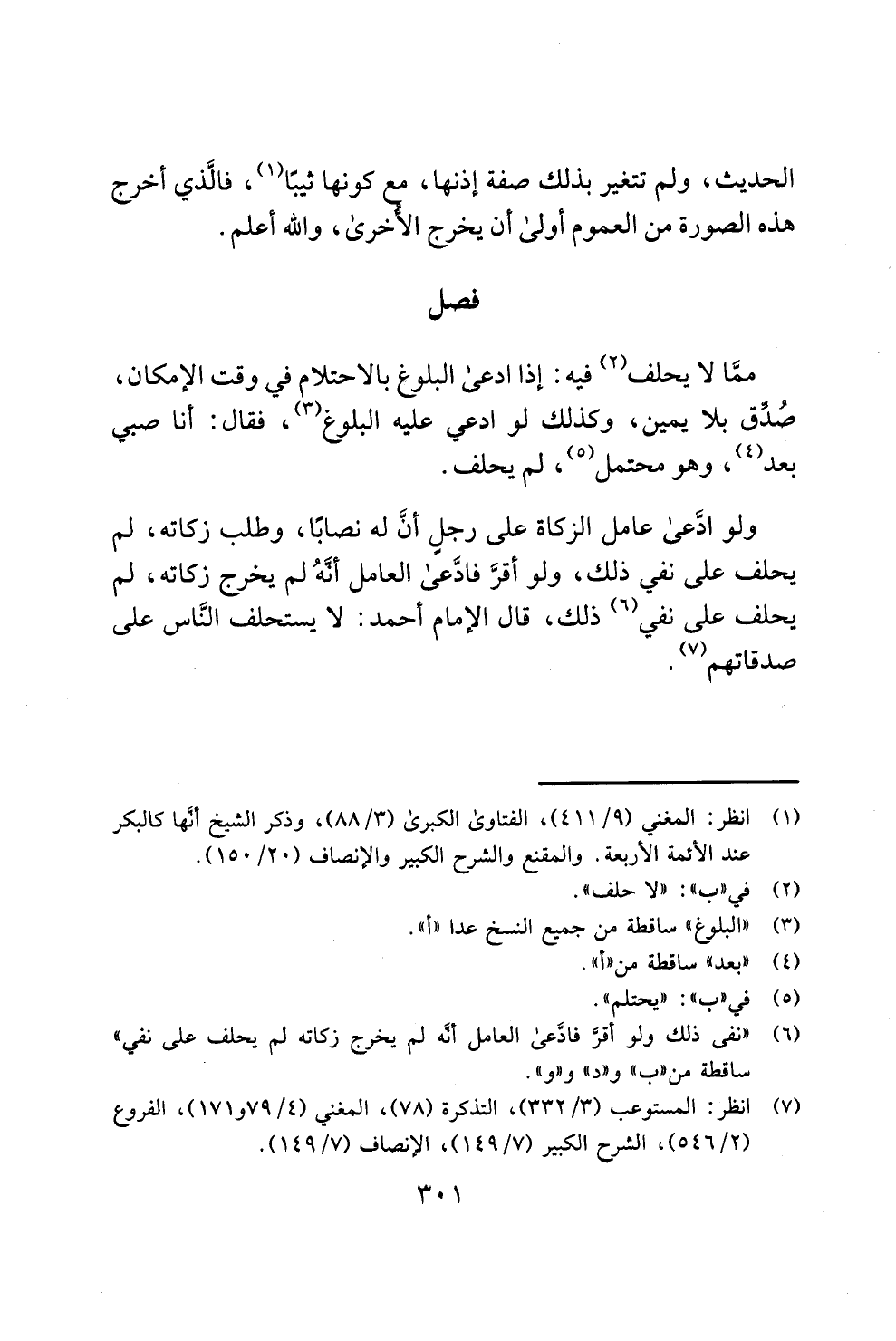 (¬7) انظر: المستوعب (3/ 332)، التذكرة (78)، المغني (4/ 79 و 171)، الفروع (2/ 546)، الشرح الكبير (7/ 149)، الإنصاف (7/ 149).