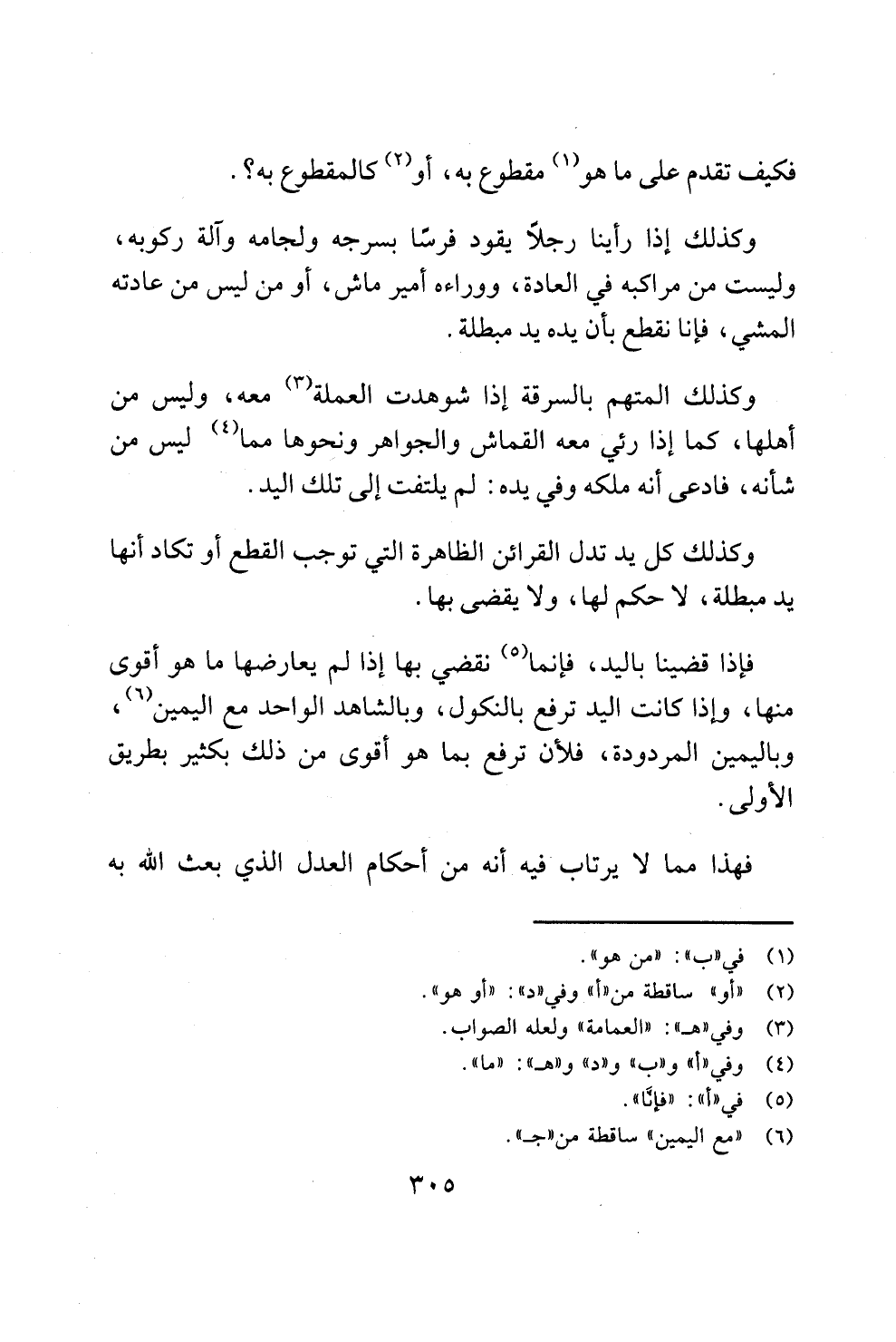 وكذلك إذا رأينا رجلًا يقود فرسًا بسرجه ولجامه وآلة ركوبه، وليست من مراكبه في العادة، ووراءه أمير ماش، أو من ليس من عادته المشي، فإنا نقطع بأن يده يد مبطلة.