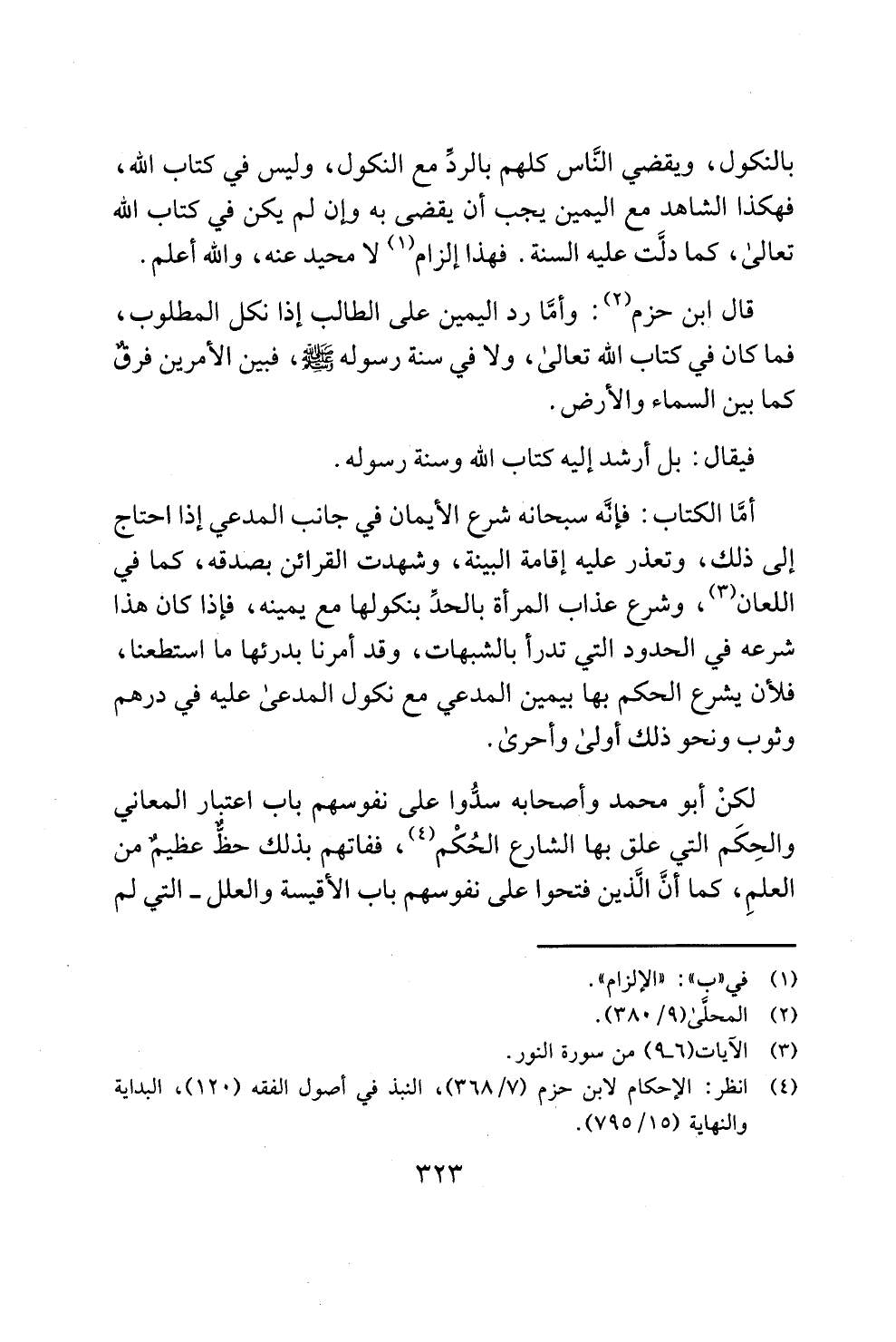 قال ابن حزم (¬2): وأمَّا رد اليمين على الطالب إذا نكل المطلوب، فما كان في كتاب الله تعالى، ولا في سنة رسوله - صلى الله عليه وسلم -، فبين الأمرين فرقٌ كما بين السماء والأرض.