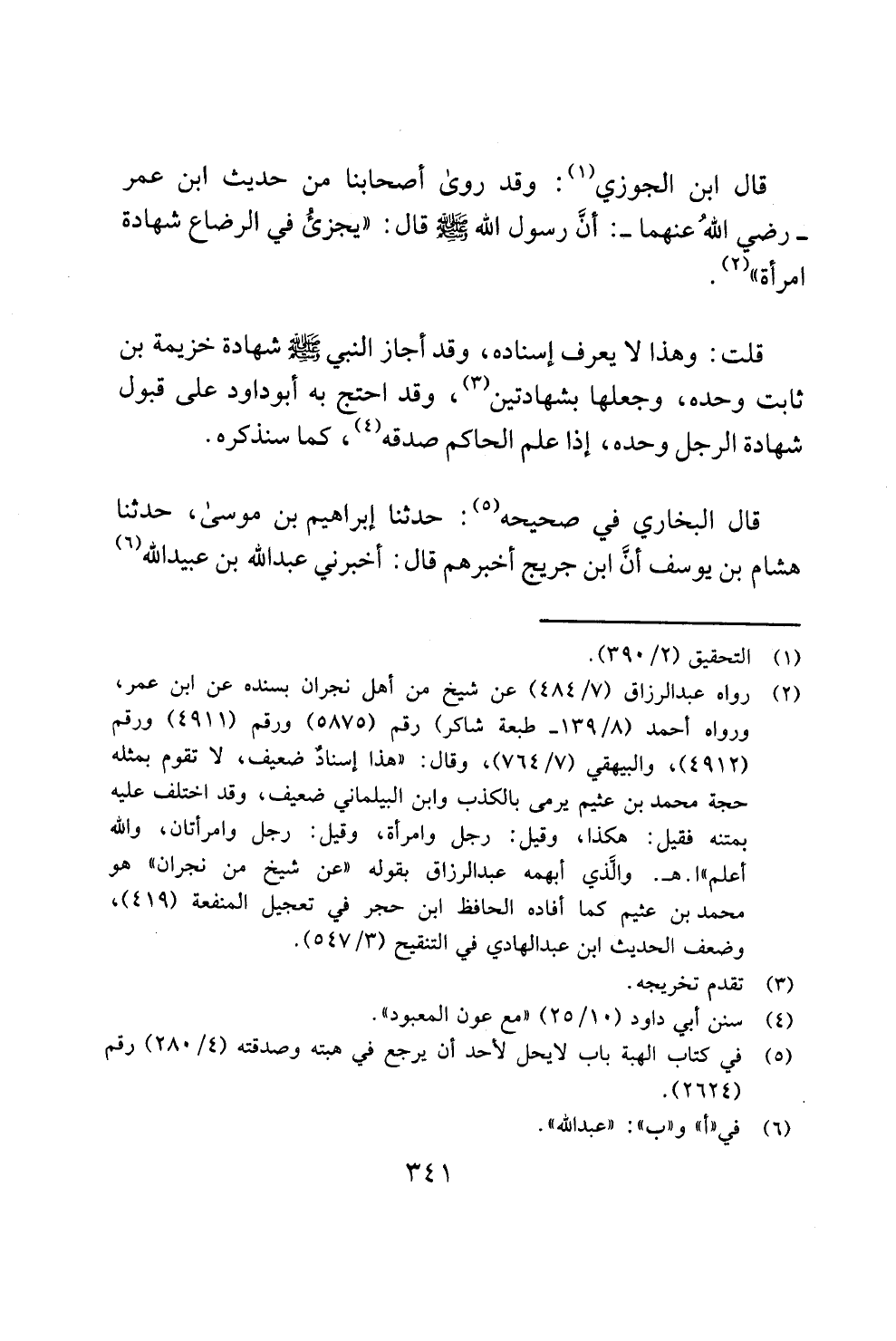 (¬2) رواه عبد الرزاق (7/ 484) عن شيخ من أهل نجران بسنده عن ابن عمر، ورواه أحمد (8/ 139 - طبعة شاكر) رقم (5875) ورقم (4911) ورقم (4912)، والبيهقي (7/ 764)، وقال: "هذا إسنادٌ ضعيف، لا تقوم بمثله حجة محمد بن عثيم يرمى بالكذب وابن البيلماني ضعيف، وقد اختلف عليه بمتنه فقيل: هكذا، وقيل: رجل وامرأة، وقيل: رجل وامرأتان، والله أعلم" ا. هـ. والَّذي أبهمه عبد الرزاق بقوله "عن شيخ من نجران" هو محمد بن عثيم كما أفاده الحافظ ابن حجر في تعجيل المنفعة (419)، وضعف الحديث ابن عبد الهادي في التنقيح (3/ 547).