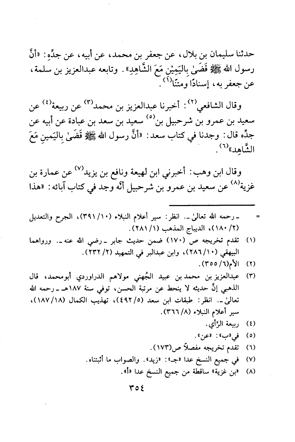 حدثنا سليمان بن بلال، عن جعفر بن محمد، عن أبيه، عن جدِّهِ: "أنَّ رسول الله - صلى الله عليه وسلم - قَضَى بِاليَمِيْن مَعَ الشَاهِدِ". وتابعه عبد العزيز بن سلمة، عن جعفر به، إسنادًا ومتنًا (¬1).