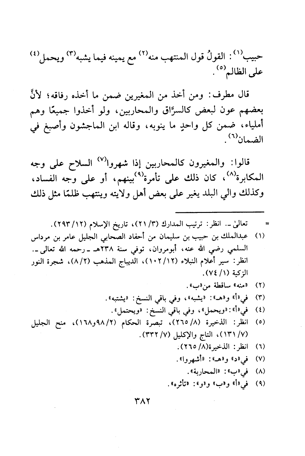 (¬5) انظر: الذخيرة (8/ 265)، تبصرة الحكام (2/ 98 و 168)، منح الجليل (7/ 131)، التاج والإكليل (7/ 332).