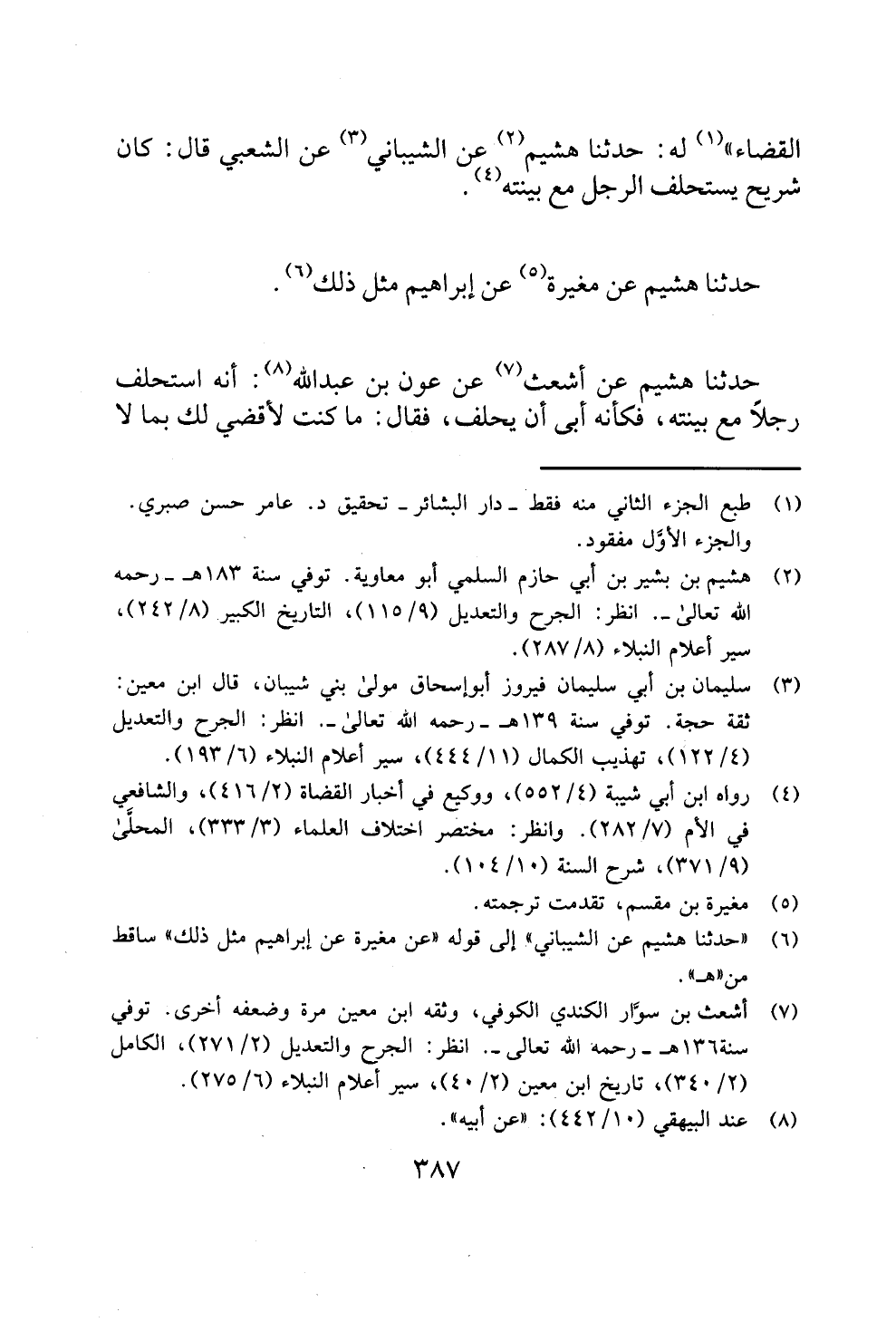 (¬2) هشيم بن بشير بن أبي حازم السلمي أبو معاوية. توفي سنة 183 هـ - رحمه الله تعالى -. انظر: الجرح والتعديل (9/ 115)، التاريخ الكبير (8/ 242)، سير أعلام النبلاء (8/ 287).