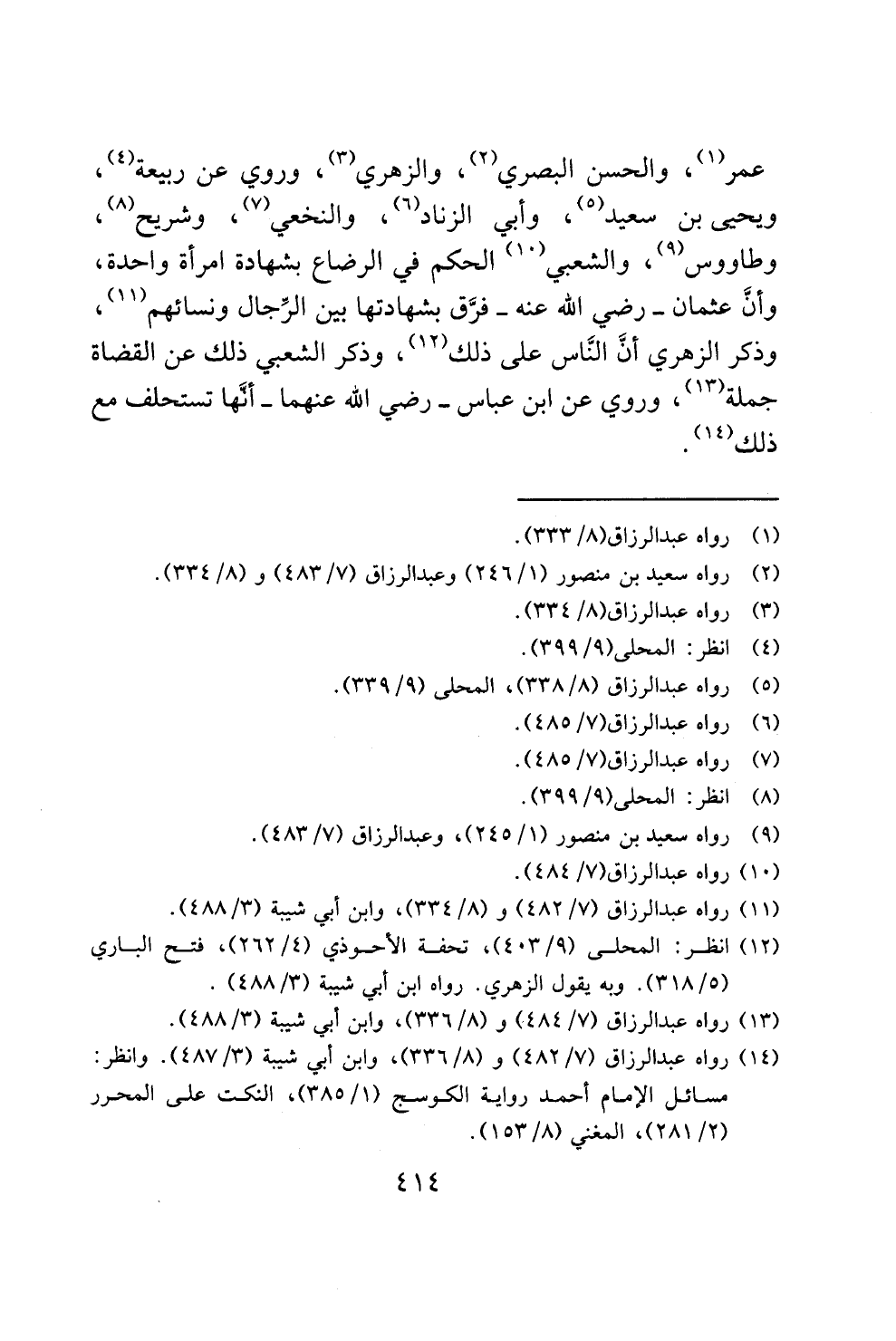 (¬14) رواه عبد الرزاق (7/ 482) و (8/ 336)، وابن أبي شيبة (3/ 487). وانظر: مسائل الإمام أحمد رواية الكوسج (1/ 385)، النكت على المحرر (2/ 281)، المغني (8/ 153).