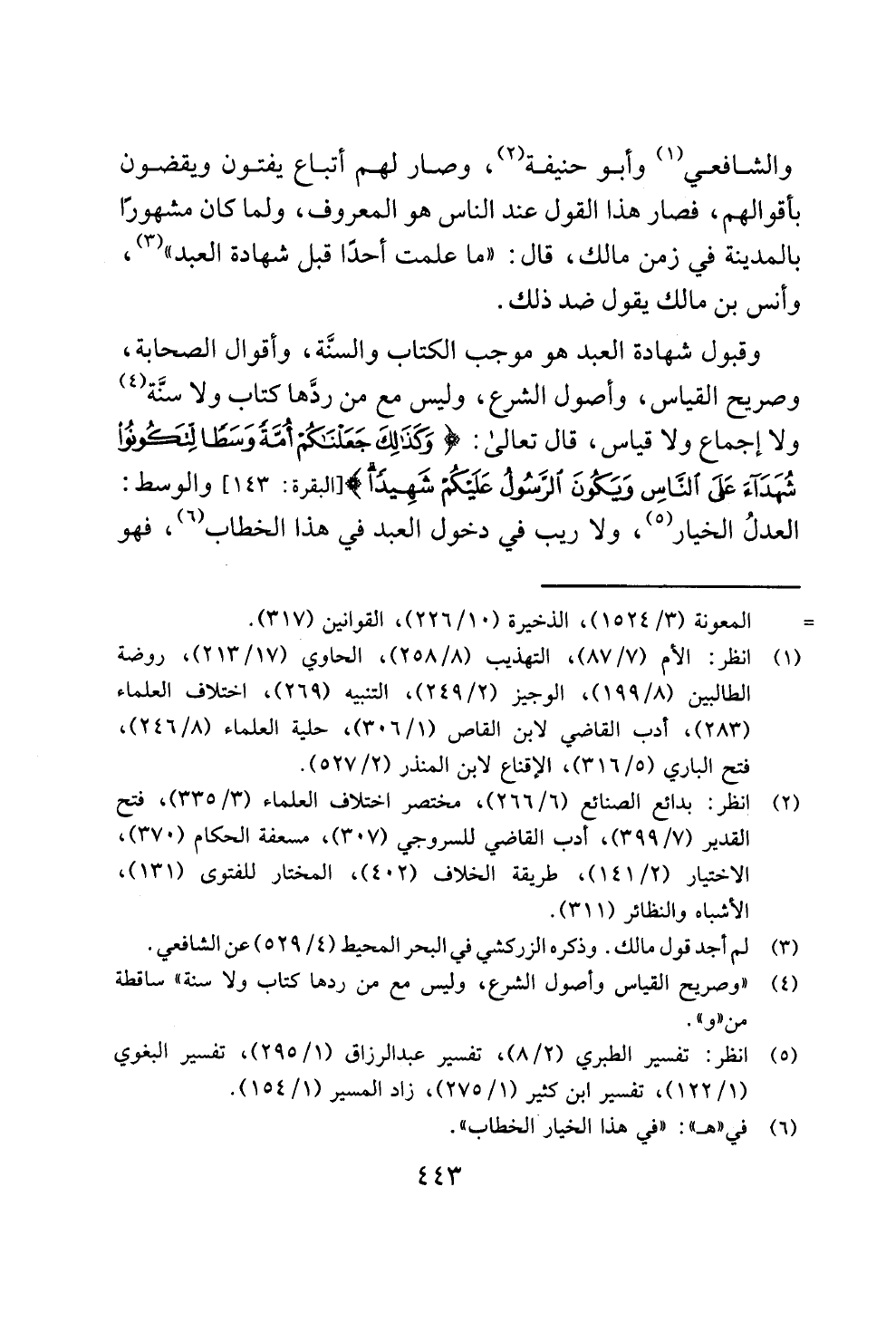 وقبول شهادة العبد هو موجب الكتاب والسنَّة، وأقوال الصحابة، وصريح القياس، وأصول الشرع، وليس مع من ردَّها كتاب ولا سنَّة (¬4) ولا إجماع ولا قياس، قال تعالى: {وَكَذَلِكَ جَعَلْنَاكُمْ أُمَّةً وَسَطًا لِتَكُونُوا شُهَدَاءَ عَلَى النَّاسِ وَيَكُونَ الرَّسُولُ عَلَيْكُمْ شَهِيدًا} [البقرة: 143] والوسط: العدلُ الخيار (¬5)، ولا ريب في دخول العبد في هذا الخطاب (¬6)، فهو