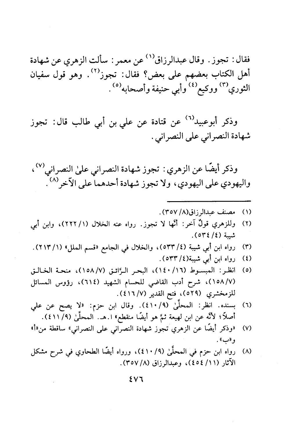 (¬7) "وذكر أيضًا عن الزهري تجوز شهادة النصراني على النصراني" ساقطة من "أ" و"ب".