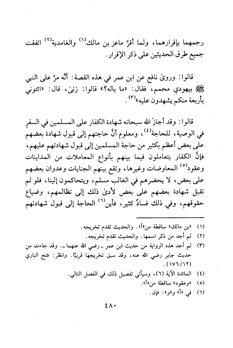 قالوا: وروى نافع عن ابن عمر في هذه القصة: أنَّه مرَّ على النبي - صلى الله عليه وسلم - بيهودي محمم، فقال: "ما باله؟ " قالوا: زنى، قال: "ائتوني بأربعة منكم يشهدون عليه" (¬3).