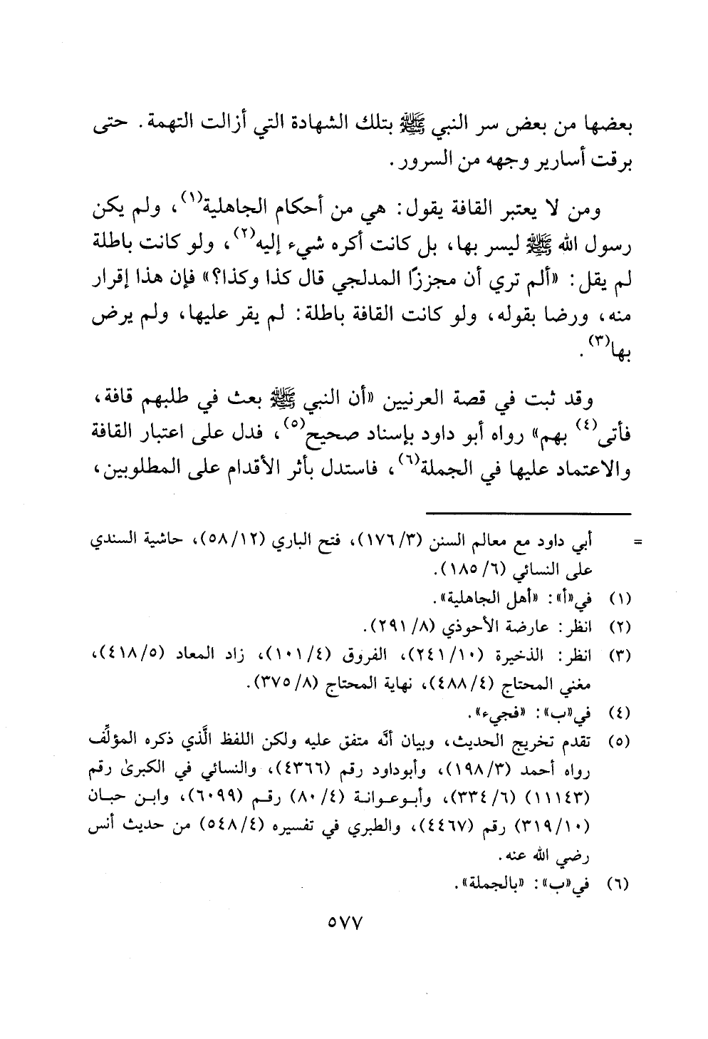 وقد ثبت في قصة العرنيين "أن النبي - صلى الله عليه وسلم - بعث في طلبهم قافة، فأتى (¬4) بهم" رواه أبو داود بإسناد صحيح (¬5)، فدل على اعتبار القافة والاعتماد عليها في الجملة (¬6)، فاستدل بأثر الأقدام على المطلوبين،