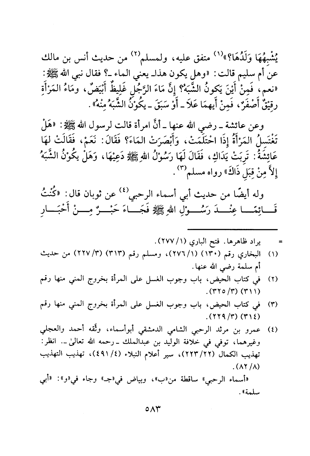 (¬1) البخاري رقم (130) (1/ 276)، ومسلم رقم (313) (3/ 227) من حديث أم سلمة رضي الله عنها.