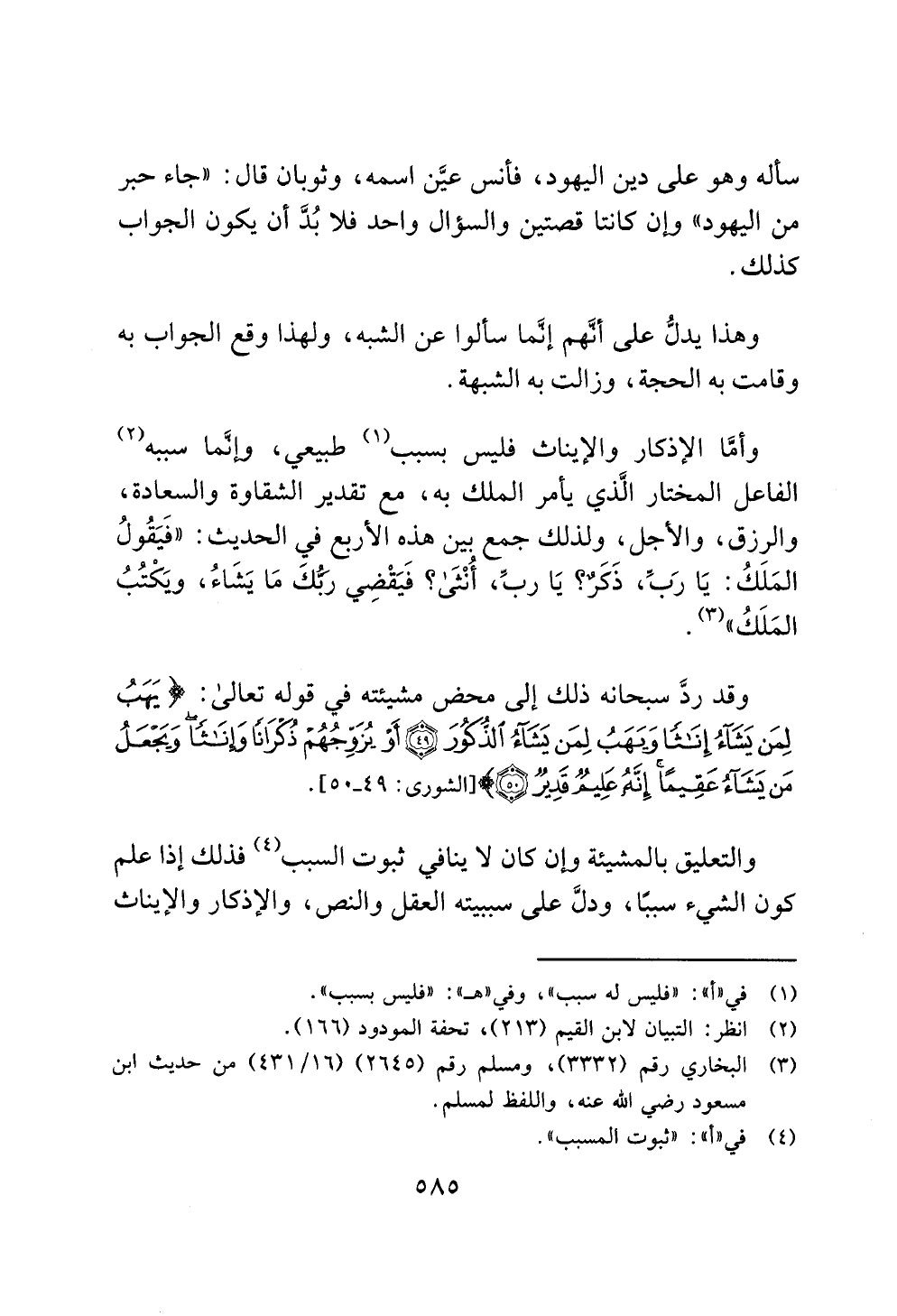 وأمَّا الإذكار والإيناث فليس بسبب (¬1) طبيعي، وإنَّما سببه (¬2) الفاعل المختار الَّذي يأمر الملك به، مع تقدير الشقاوة والسعادة، والرزق، والأجل، ولذلك جمع بين هذه الأربع في الحديث: "فَيَقُولُ المَلَكُ: يَا رَبِّ، ذَكَرٌ؟ يَا ربِّ، أُنْثَى؟ فَيَقْضِي رَبُّكَ مَا يَشَاءُ، ويَكْتُبُ المَلَكُ" (¬3).