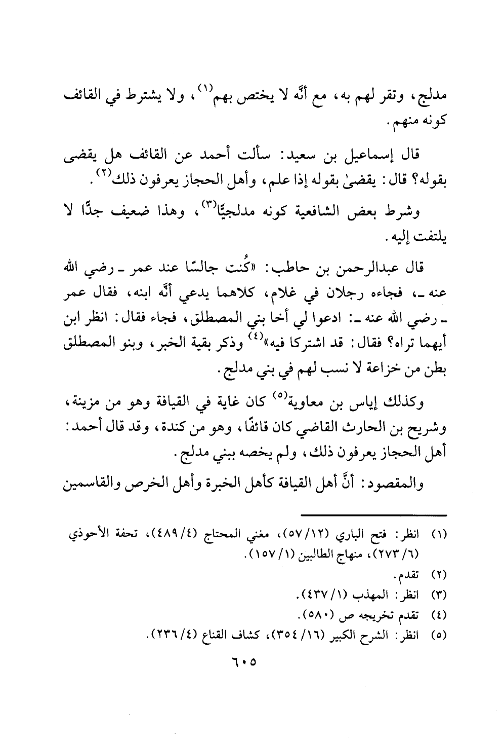 قال إسماعيل بن سعيد: سألت أحمد عن القائف هل يقضى بقوله؟ قال: يقضى بقوله إذا علم، وأهل الحجاز يعرفون ذلك (¬2).