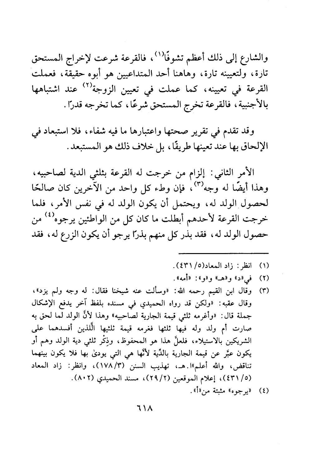 الأمر الثاني: إلزام من خرجت له القرعة بثلثي الدية لصاحبيه، وهذا أيضًا له وجه (¬3)، فإن وطء كل واحد من الآخرين كان صالحًا لحصول الولد له، ويحتمل أن يكون الولد له في نفس الأمر، فلما خرجت القرعة لأحدهم أبطلت ما كان كل من الواطئين يرجوه (¬4) من حصول الولد له، فقد بذر كل منهم بذرًا يرجو أن يكون الزرع له، فقد