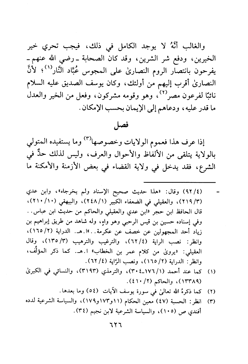 والغالب أنَّهُ لا يوجد الكامل في ذلك، فيجب تحري خير الخيرين، ودفع شر الشرين، وقد كان الصحابة - رضي الله عنهم - يفرحون بانتصار الروم النصارى على المجوس عُبَّاد النَّار (¬1)؛ لأنَّ النصارى أقرب إليهم من أولئك، وكان يوسف الصديق عليه السلام نائبًا لفرعون مصر (¬2)، وهو وقومه مشركون، وفعل من الخير والعدل ما قدر عليه، ودعاهم إلى الإيمان بحسب الإمكان.