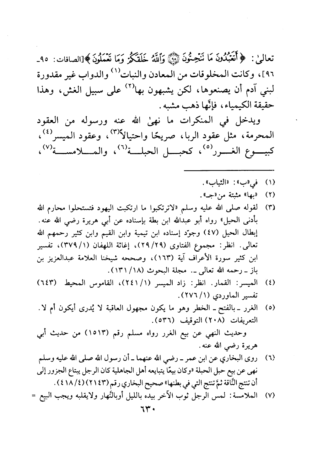 تعالى: {قَالَ أَتَعْبُدُونَ مَا تَنْحِتُونَ (95) وَاللَّهُ خَلَقَكُمْ وَمَا تَعْمَلُونَ} [الصافات: 95 - 96]، وكانت المخلوقات من المعادن والنبات (¬1) والدواب غير مقدورة لبني آدم أن يصنعوها، لكن يشبهون بها (¬2) على سبيل الغش، وهذا حقيقة الكيمياء، فإنَّها ذهب مشبه.