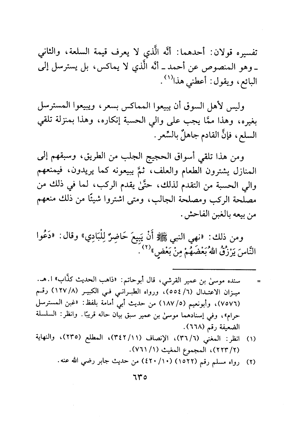 ومن ذلك: "نهي النبي - صلى الله عليه وسلم - أنْ يَبِيعَ حَاضِرٌ لِلْبَادِي" وقال: "دَعُوا النَّاسَ يَرْزُقُ اللهُ بَعْضَهُمْ مِنْ بَعْضٍ" (¬2).