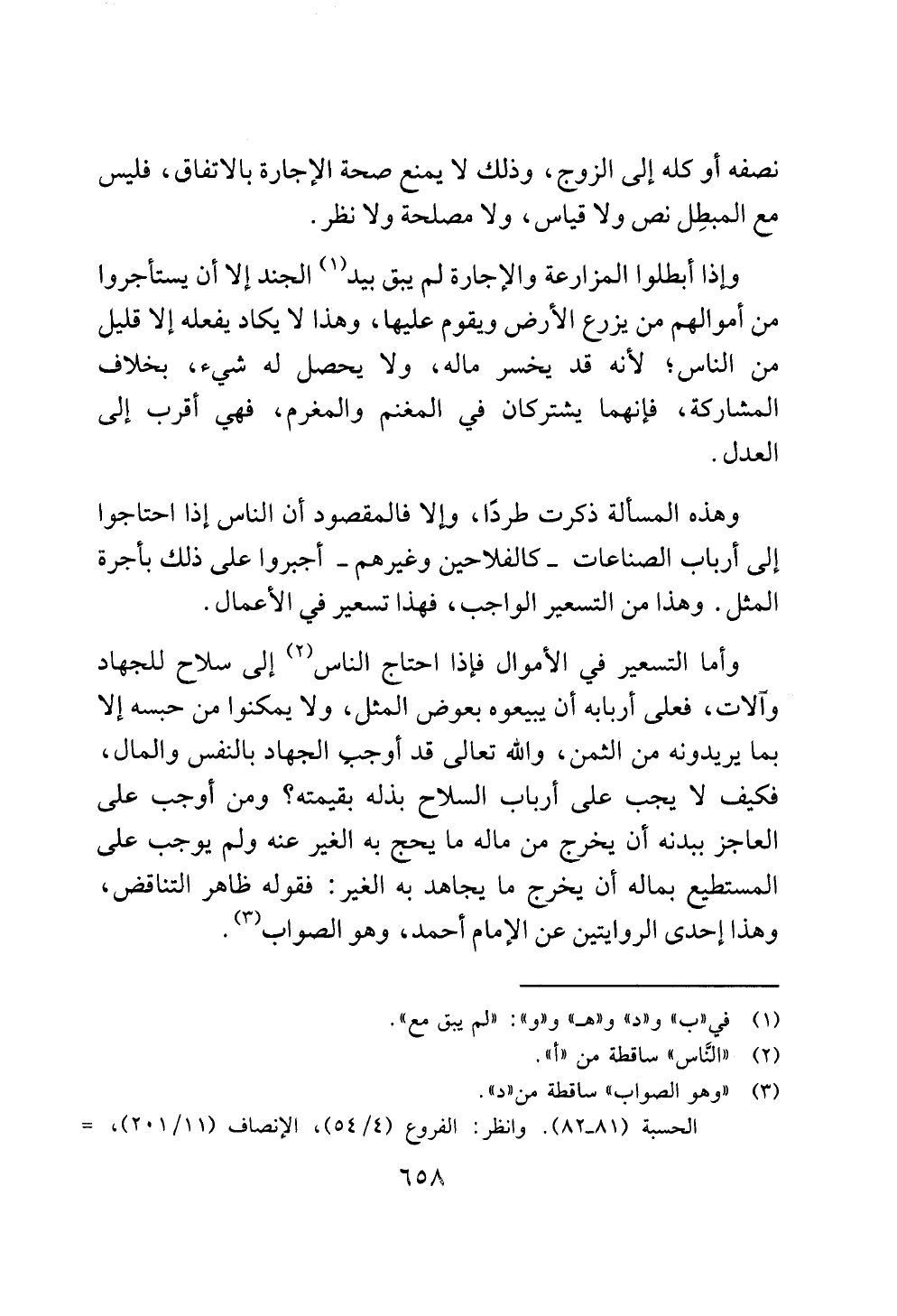 وهذه المسألة ذكرت طردًا، وإلا فالمقصود أن الناس إذا احتاجوا إلى أرباب الصناعات - كالفلاحين وغيرهم - أجبروا على ذلك بأجرة المثل. وهذا من التسعير الواجب، فهذا تسعير في الأعمال.