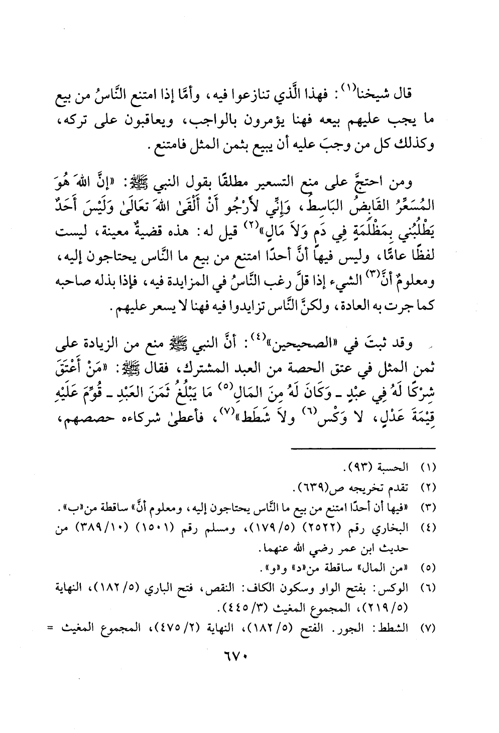 (¬3) "فيها أن أحدًا امتنع من بيع ما النَّاس يحتاجون إليه، ومعلوم أنَّ" ساقطة من "ب".