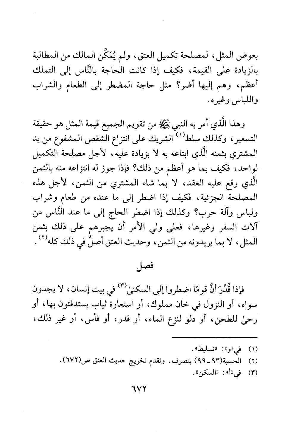 (¬2) الحسبة (93 - 99) بتصرف. وتقدم تخريج حديث العتق ص (672).
