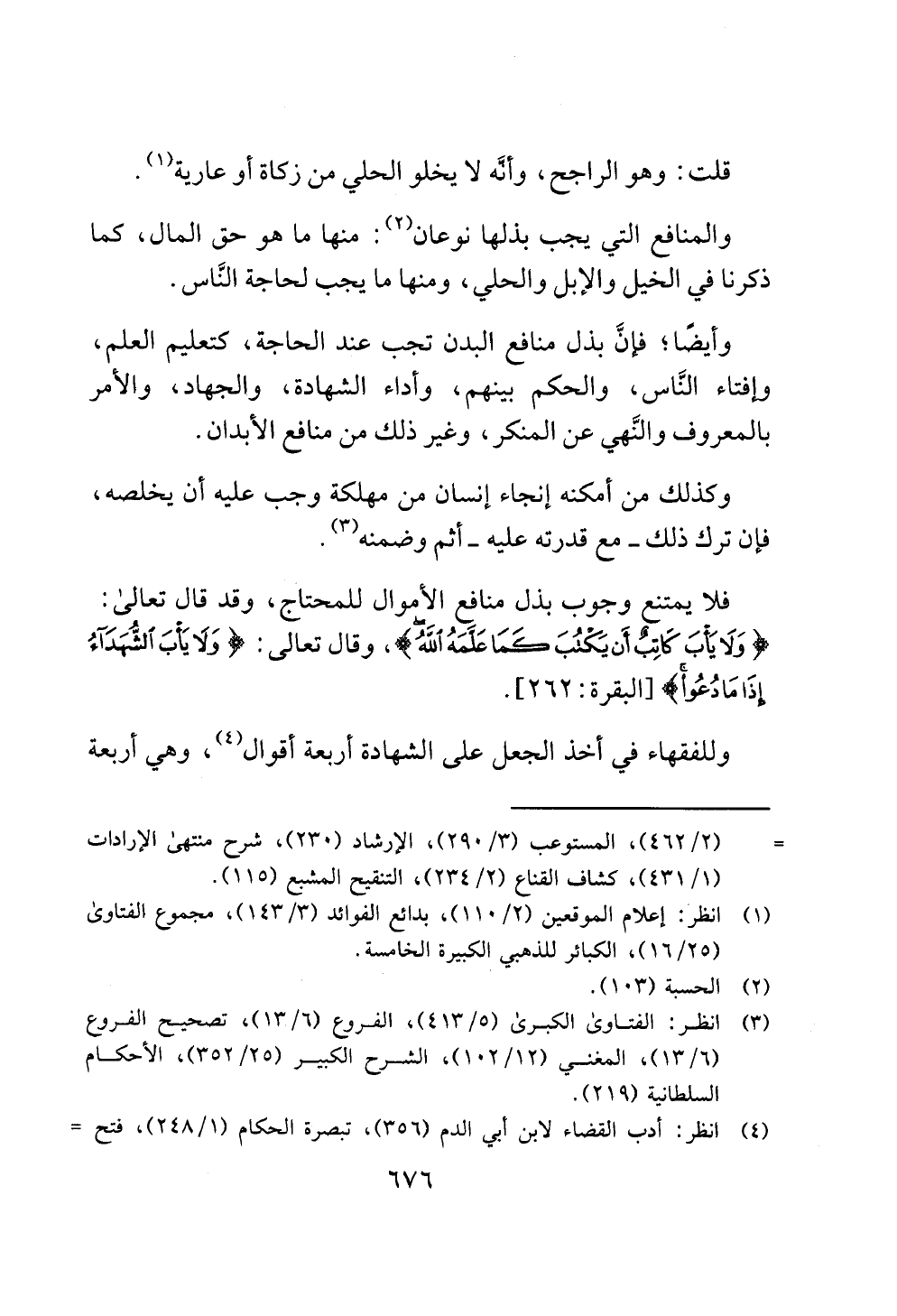 فلا يمتنع وجوب بذل منافع الأموال للمحتاج، وقد قال تعالى: {وَلَا يَأْبَ كَاتِبٌ أَنْ يَكْتُبَ كَمَا عَلَّمَهُ اللَّهُ}، وقال تعالى: {وَلَا يَأْبَ الشُّهَدَاءُ إِذَا مَا دُعُوا} [البقرة: 282].