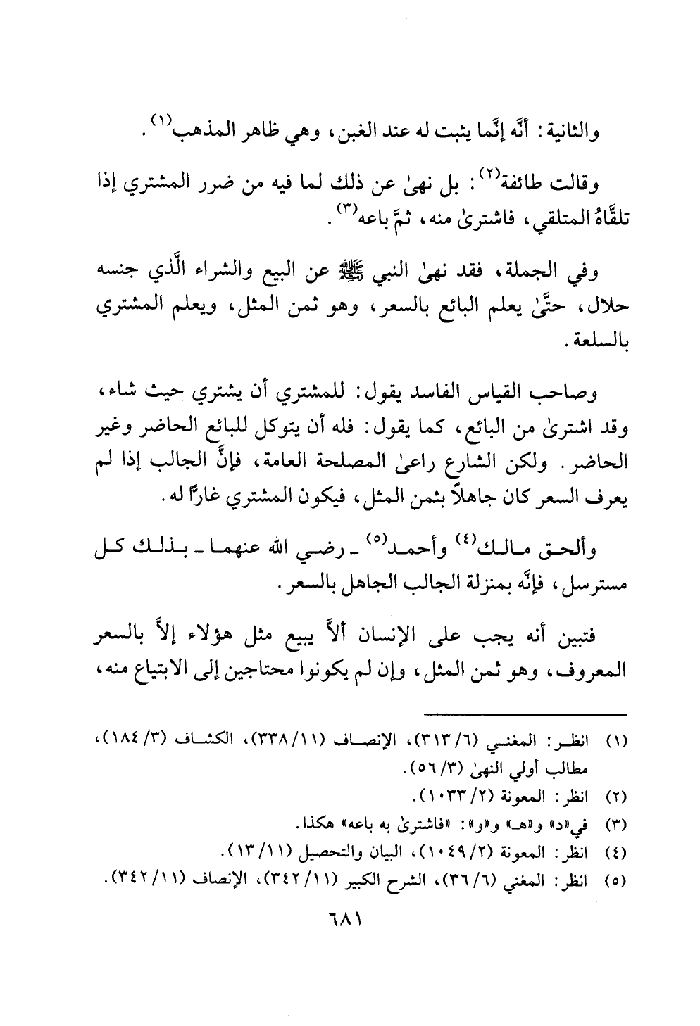 وفي الجملة، فقد نهى النبي - صلى الله عليه وسلم - عن البيع والشراء الَّذي جنسه حلال، حتَّى يعلم البائع بالسعر، وهو ثمن المثل، ويعلم المشتري بالسلعة.