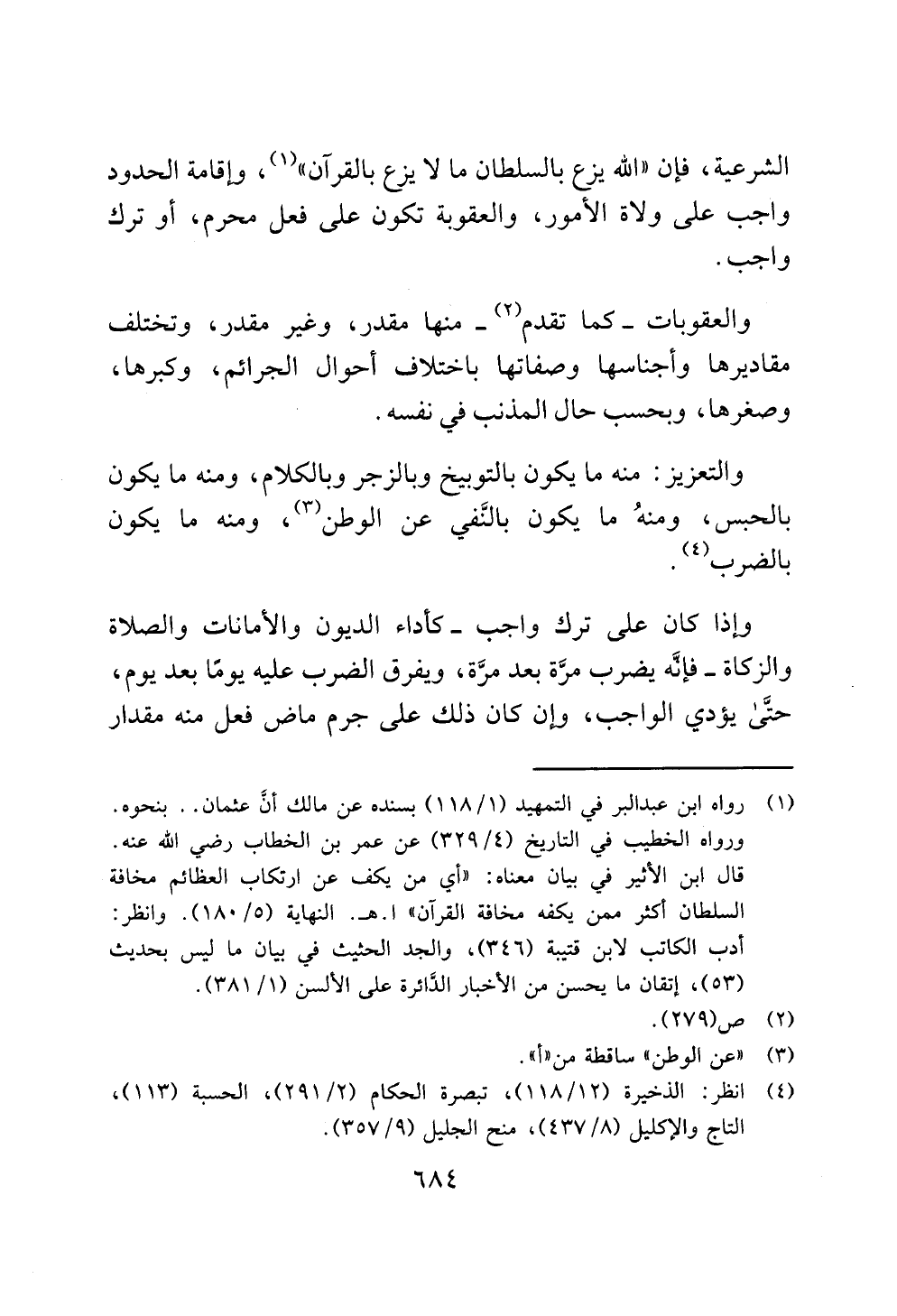 الشرعية، فإن "الله يزع بالسلطان ما لا يزع بالقرآن" (¬1)، وإقامة الحدود واجب على ولاة الأمور، والعقوبة تكون على فعل محرم، أو ترك واجب.