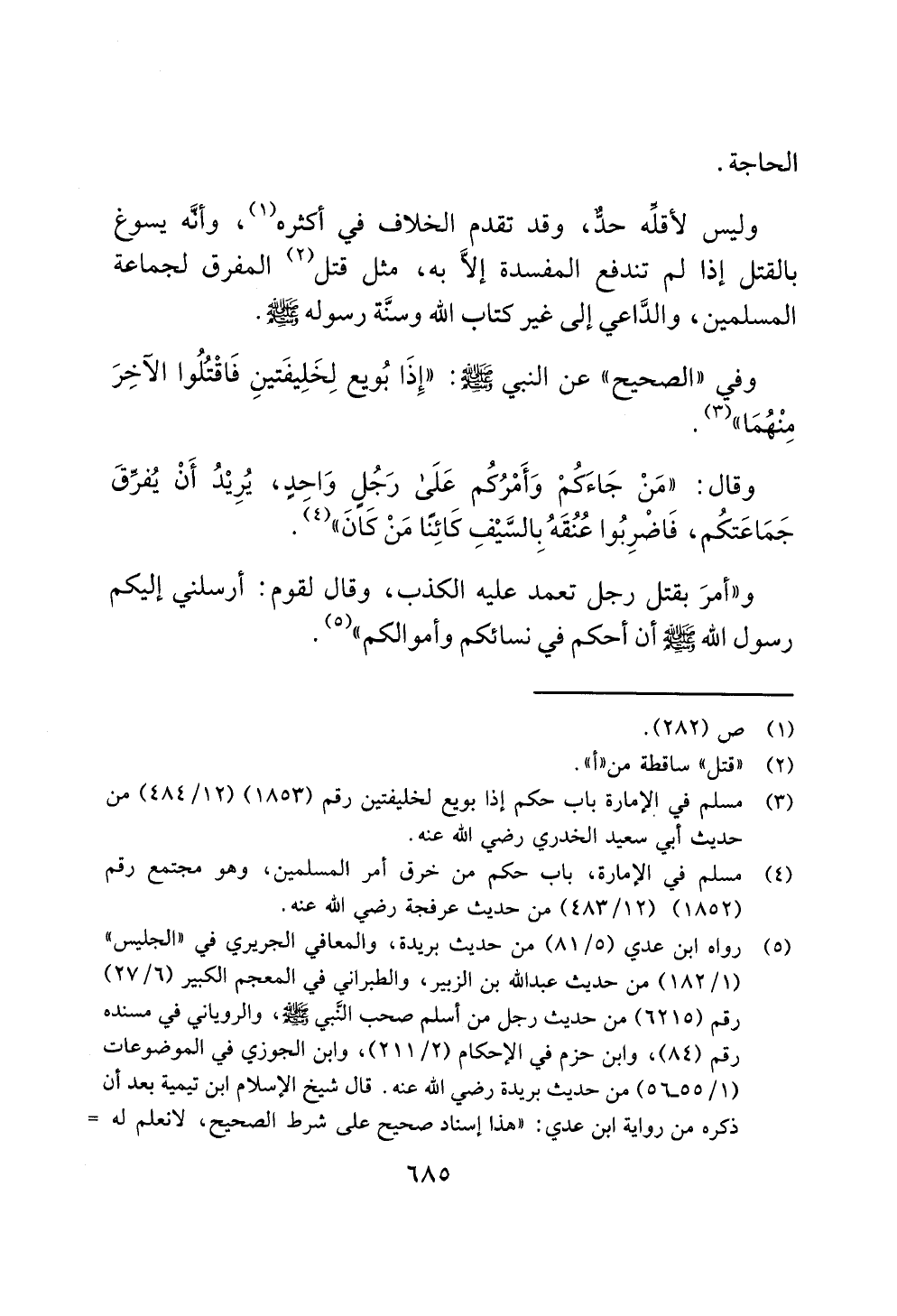 (¬4) مسلم في الإمارة، باب حكم من خرق أمر المسلمين، وهو مجتمع رقم (1852) (12/ 483) من حديث عرفجة رضي الله عنه.