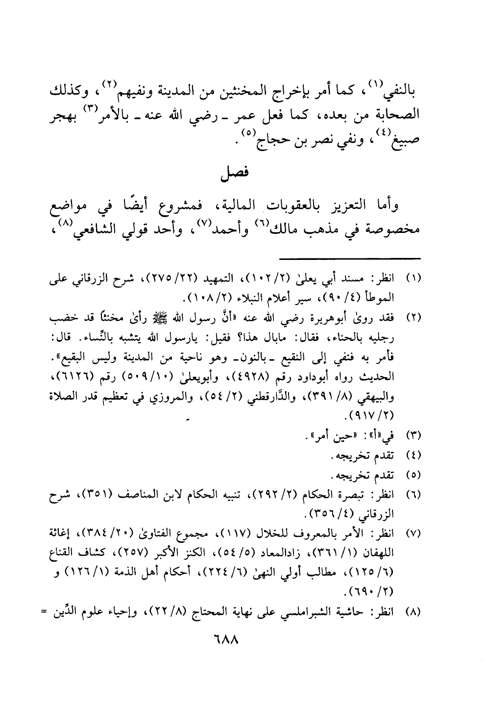 بالنفي (¬1)، كما أمر بإخراج المخنثين من المدينة ونفيهم (¬2)، وكذلك الصحابة من بعده، كما فعل عمر - رضي الله عنه - بالأمر (¬3) بهجر صبيغ (¬4)، ونفي نصر بن حجاج (¬5).