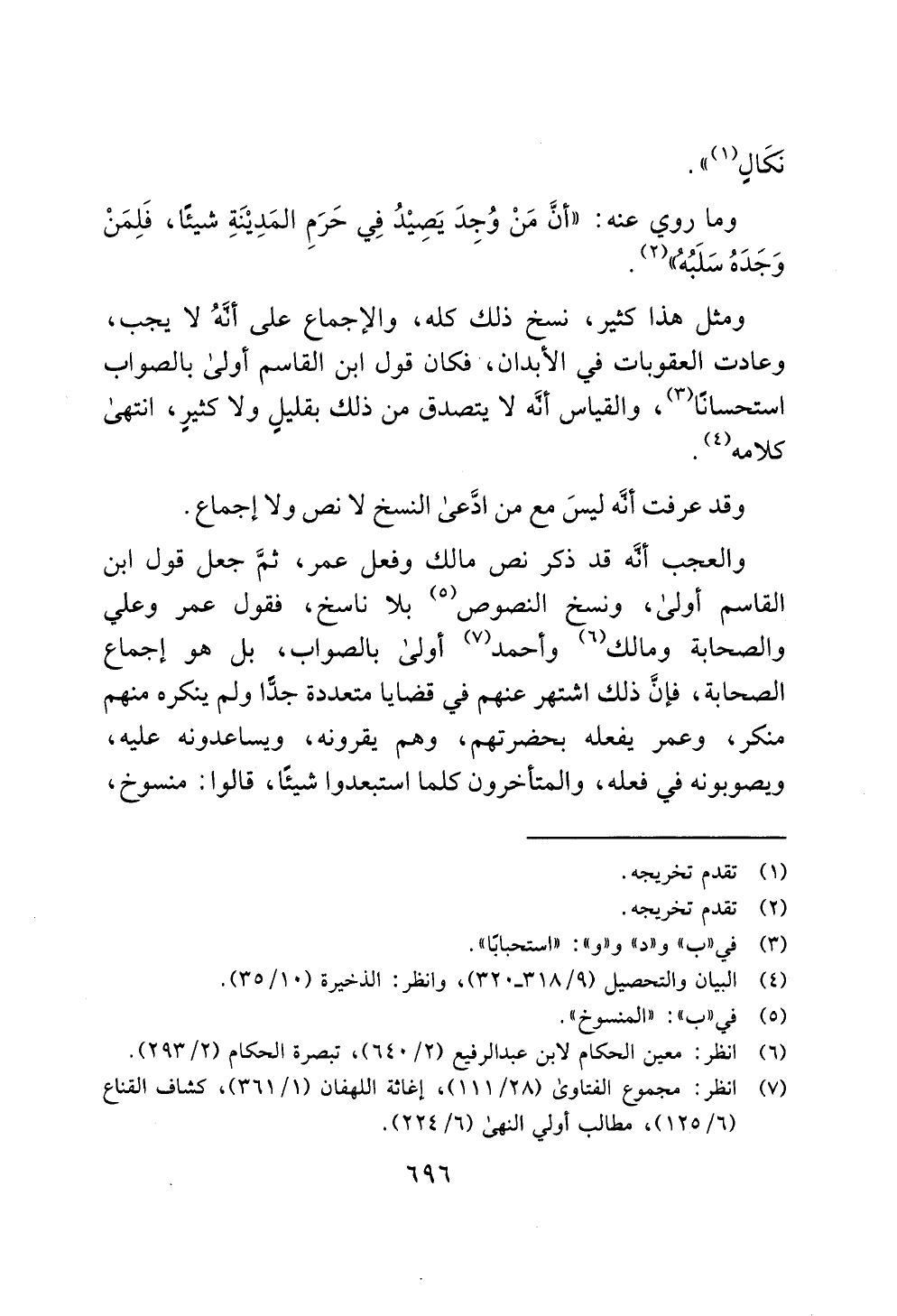 والعجب أنَّه قد ذكر نص مالك وفعل عمر، ثمَّ جعل قول ابن القاسم أولى، ونسخ النصوص (¬5) بلا ناسخ، فقول عمر وعلي والصحابة ومالك (¬6) وأحمد (¬7) أولى بالصواب، بل هو إجماع الصحابة، فإنَّ ذلك اشتهر عنهم في قضايا متعددة جدًّا ولم ينكره منهم منكر، وعمر يفعله بحضرتهم، وهم يقرونه، ويساعدونه عليه، ويصوبونه في فعله، والمتأخرون كلما استبعدوا شيئًا، قالوا: منسوخ،