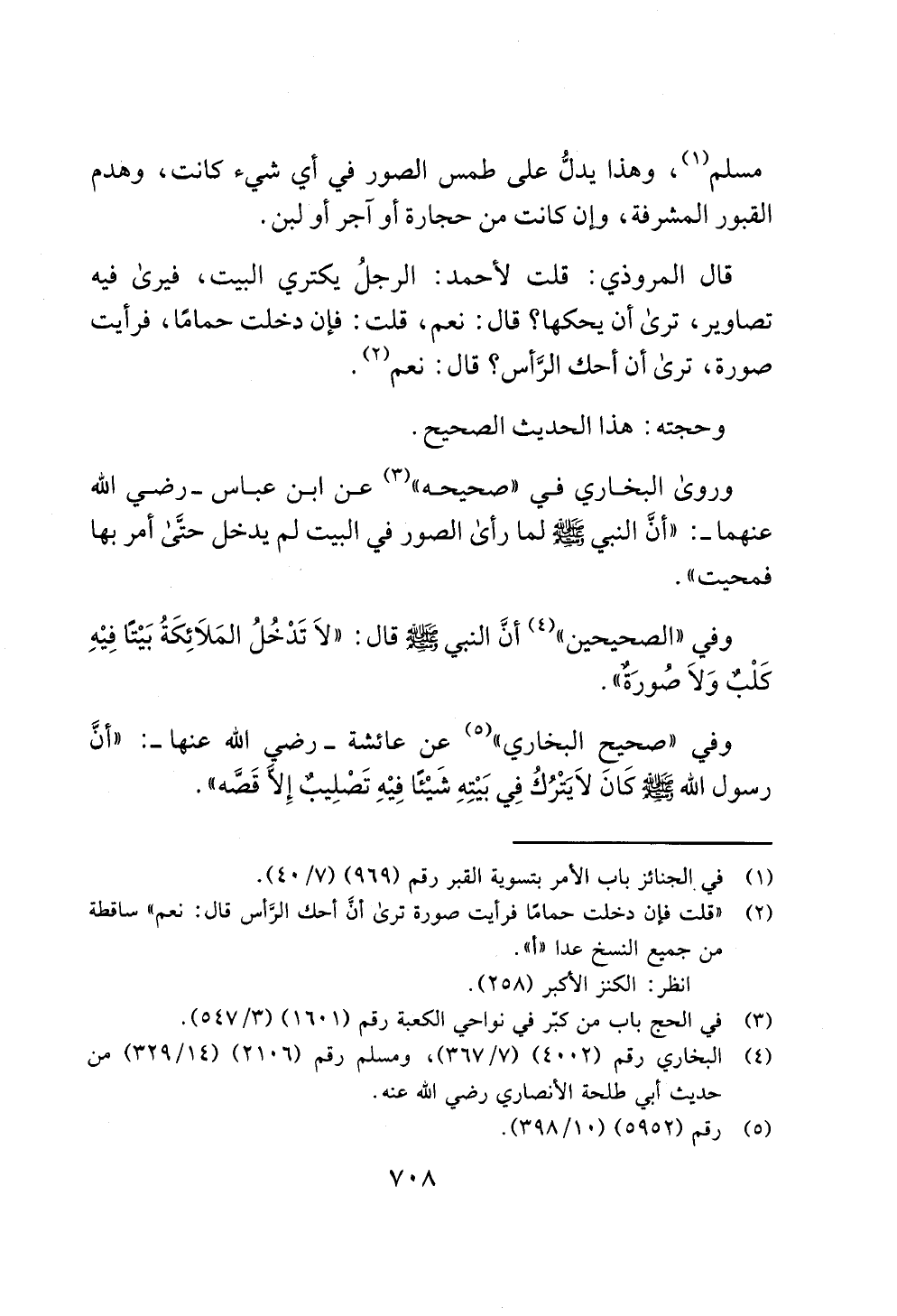مسلم (¬1)، وهذا يدلُّ على طمس الصور في أي شيء كانت، وهدم القبور المشرفة، وإن كانت من حجارة أو آجر أو لبن.