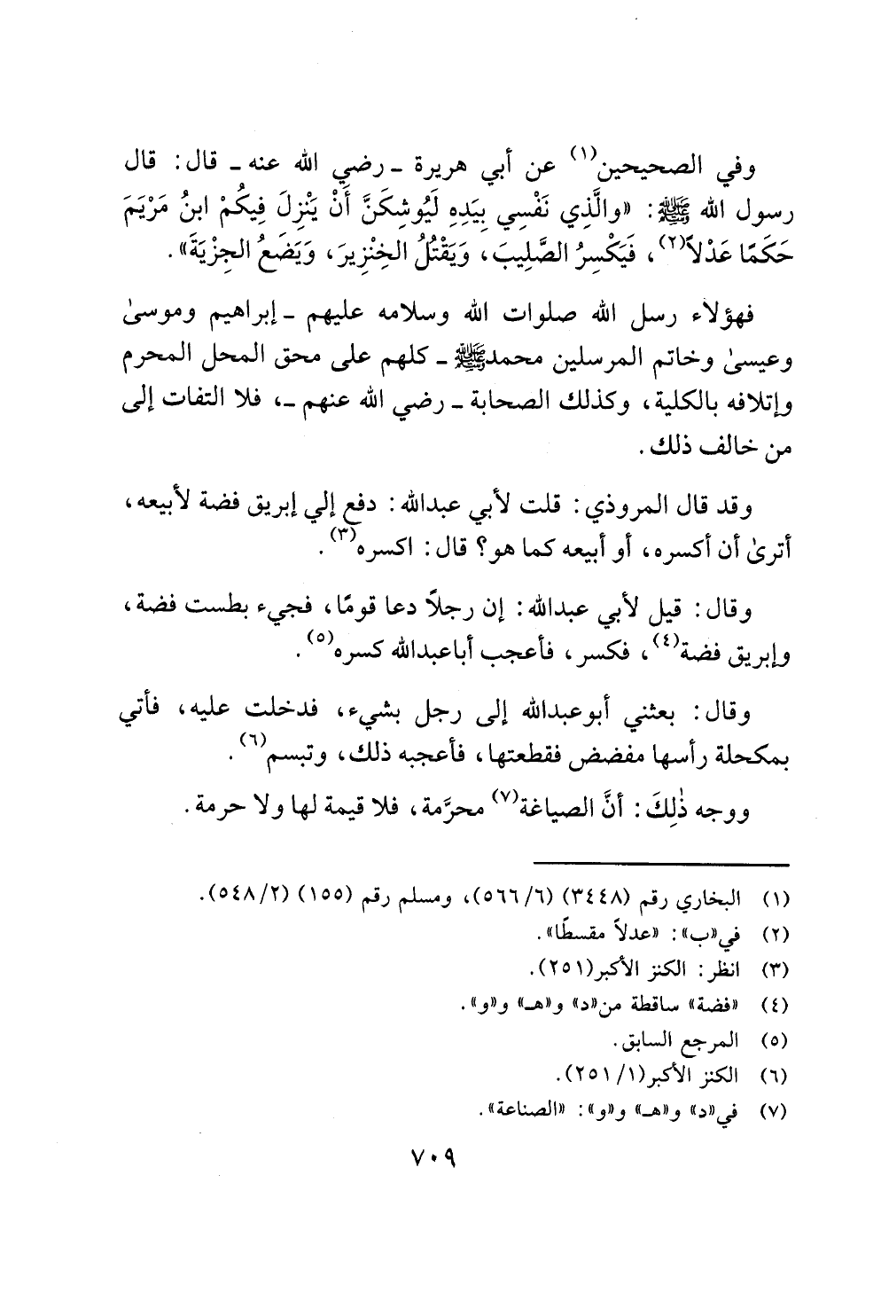 وفي الصحيحين (¬1) عن أبي هريرة - رضي الله عنه - قال: قال رسول الله - صلى الله عليه وسلم -: "والَّذِي نَفْسِي بيَدِهِ لَيُوشِكَنَّ أَنْ يَنْزِلَ فِيكُمْ ابنُ مَرْيَمَ حَكَمًا عَدْلًا (¬2)، فَيَكْسِرُ الصَّلِيبَ، وَيَقْتُلُ الخِنْزِيرَ، وَيَضَعُ الجِزْيَةَ".