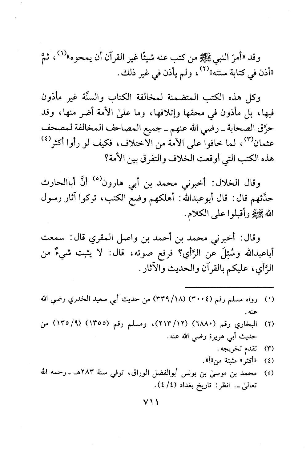 وقد "أمرَ النبي - صلى الله عليه وسلم - من كتب عنه شيئًا غير القرآن أن يمحوه" (¬1)، ثمَّ "أذن في كتابة سنته" (¬2)، ولم يأذن في غير ذلك.